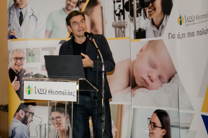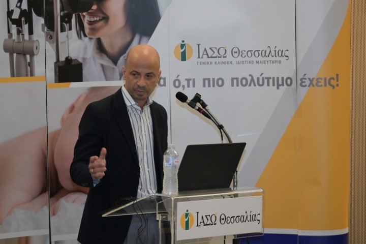 Στο καλωσόρισμά του ο Πρόεδρος του Επιστημονικού Συμβουλίου του ΙΑΣΩ Θεσσαλίας Απόστολος Κομνός, αφού ευχαρίστησε τους συμμετέχοντες και παραβρισκόμενους, ανέφερε «Με μεγάλη μας χαρά φιλοξενήσαμε στο ΙΑΣΩ Θεσσαλίας από το Παρίσι το διακεκριμένο Λαρισαίο επιστήμονα Γιώργο Σιδέρη, ο οποίος έχει μία σταθερή συνεργασία και μία αμοιβαία σχέση σεβασμού με τον δικό μας, Νίκο Μαγκούτη. Μαζί, οι δύο αυτοί επεμβατικοί καρδιολόγοι αποτελούν ένα σπουδαίο δίδυμο που μπορεί να ανταποκριθεί ακόμη και στις  δυσκολότερες επεμβάσεις στα αγγεία και είναι τιμή μας, που τους έχουμε μαζί στο ΙΑΣΩ Θεσσαλίας.»
