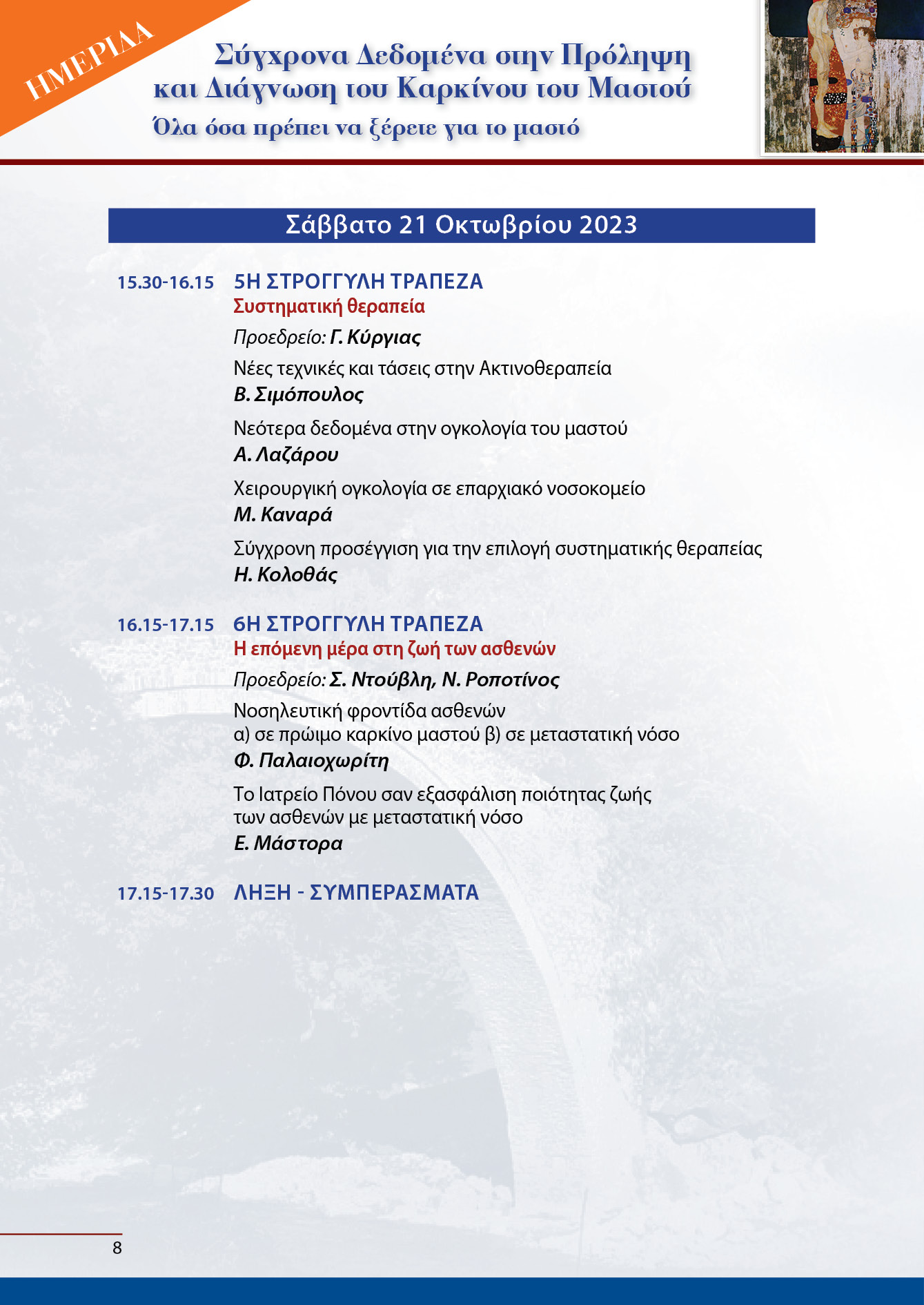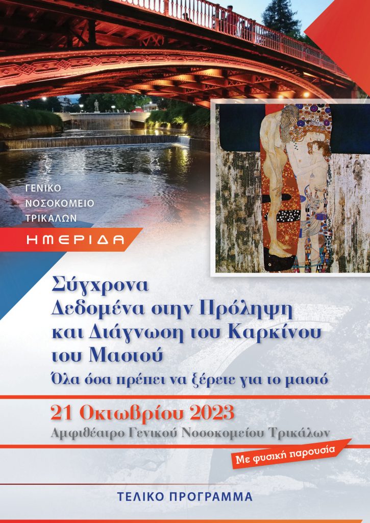 Βρισκόμαστε στην ευχάριστη θέση να σας ανακοινώσουμε ότι θα διεξαχθεί στα Τρίκαλα το Σάββατο 21 Οκτωβρίου 2023, Ημερίδα με θέμα «Σύγχρονα δεδομένα στην πρόληψη και διάγνωση του καρκίνου του μαστού-Όλα όσα πρέπει να ξέρετε για τον μαστό».