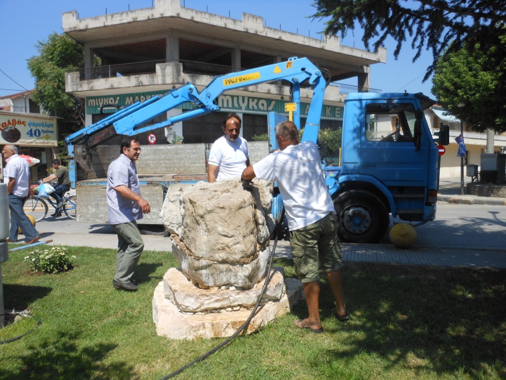 Η παραπάνω εταιρία αφιλοκερδώς προσφέρθηκε να τοποθετήσει τη πέτρα… γιατί πολύ απλά κάτι έπρεπε να σκεπαστεί και να αποκαλυφθεί. Εξάλλου ο χρόνος πίεζε… είχαμε φτάσει Τρίτη πριν τις εκδηλώσεις!