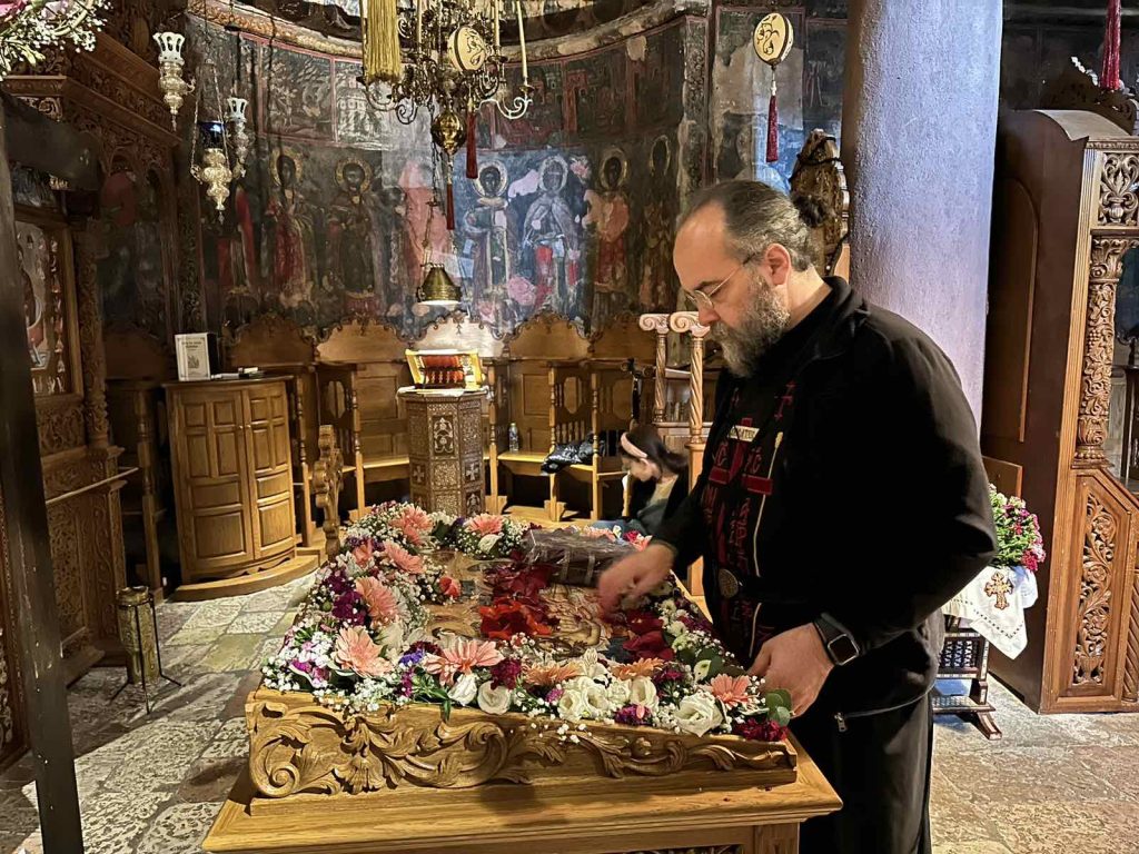 Ο Ηγούμενος της Μονής, Αρχιμανδρίτης Νεκτάριος Μητρόπουλος και ευλαβείς πιστοί προχώρησαν στη συνέχεια στον στολισμό του Επιταφίου. Δείτε εικόνες του trikalavoice.gr: