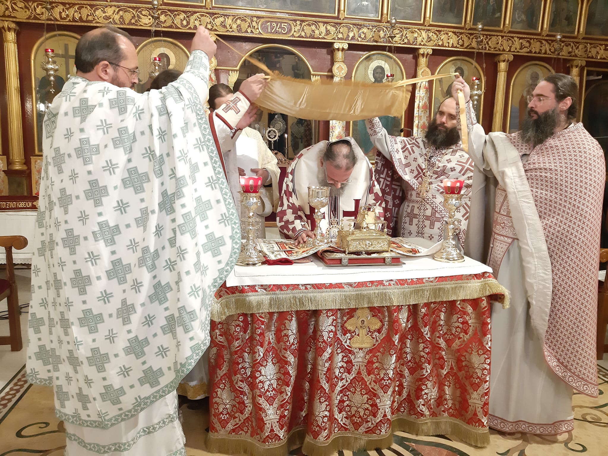 Η Θεία Λειτουργία μετά Αγρυπνίας, η οποία τελείται καθ’ έτος ανήμερα της εορτής του Αγίου η μνήμη του οποίου τιμάται από την Εκκλησία μας την 23η Οκτωβρίου, τελέστηκε και φέτος στον Ιερό Ναό Αγίων Κωνσταντίνου και Ελένης Τρικάλων. Με το πέρας της Θείας Λειτουργίας ο Σεβασμιώτατος αναφέρθηκε στην «μαρτυρία της Αναστάσεως που έδωσε ο Άγιος Ιάκωβος ο Αδελφόθεος και το μήνυμα αυτής το οποίο πρέπει να ποτίσει τις ψυχές όλων μας».
