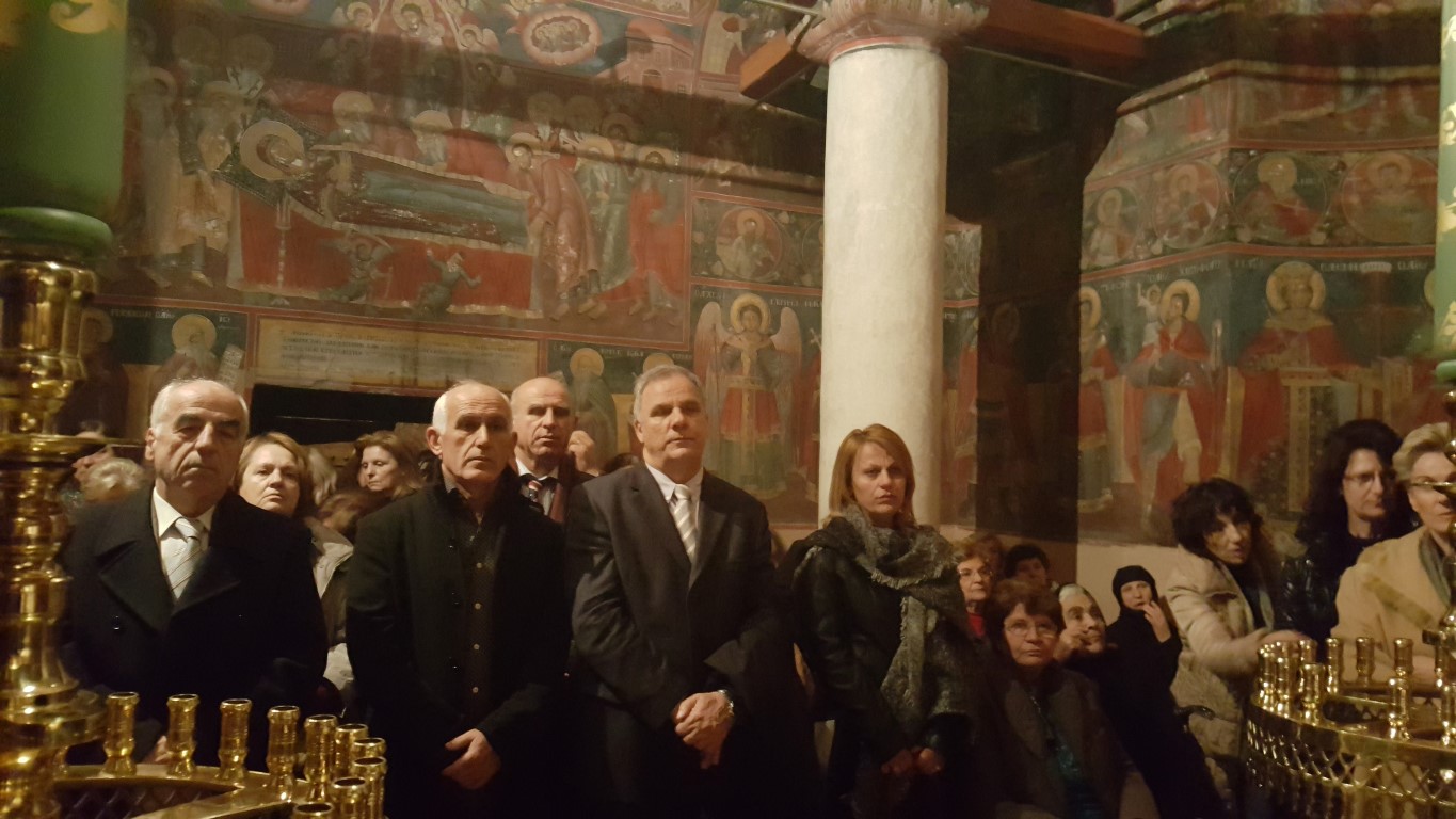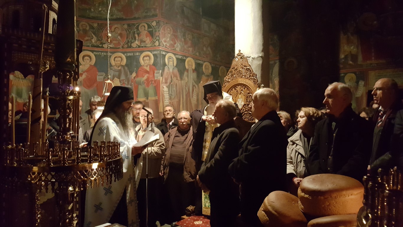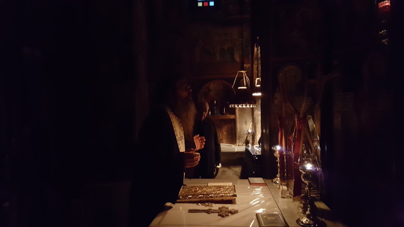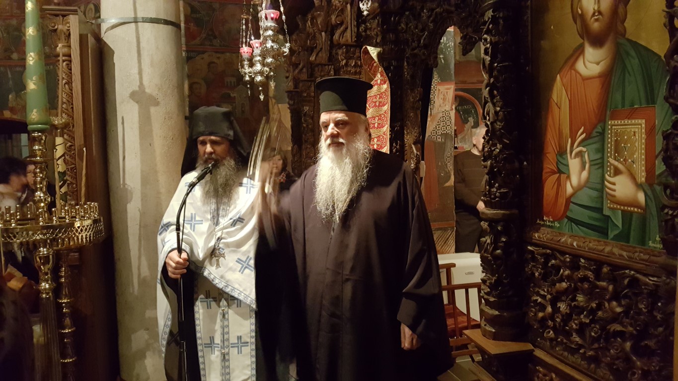 Το απόγευμα της Τρίτης, παραμονή της εορτής, τελέστηκε μέγας Αρχιερατικός Εσπερινός χοροστατούντος του Μητροπολίτου Αυλώνος Χριστοδούλου, εκ των πλέον καλλιεργημένων εκκλησιαστικών ανδρών, εγγράμματος, με εκκλησιαστικό φρόνημα και ήθος, συμμετοχή δε του Ηγουμένου της Μονής, Αρχιμανδρίτου Μακαρίου Ιακωβάκη, εκ των πλέον πνευματικών ανθρώπων της τοπικής μας Εκκλησίας.