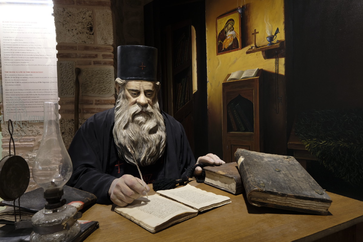 Παρουσιάζονται έτσι η αυτοβιογραφία των οσίων, η Ακολουθία που συνέθεσε προς τιµήν τους ο Ματθαίος Μυρέων, το προσωπικό τους χειρόγραφο του Θηκαρά κ.ά. Με ανάλογο σκεπτικό, η περιήγηση στον χώρο του µουσείου ολοκληρώνεται µε δύο πίνακες φωτογραφιών από την παλαιότερη και τη σύγχρονη µοναστική ζωή στον λίθο του Βαρλαάµ. Γιατί η µονή, όπως άλλωστε όλες οι µονές των Μετεώρων, δεν αποτελεί νεκρό αρχαιολογικό ή µουσειακό χώρο, αλλά είναι ζωντανός οργανισµός µε ρίζες στα βάθη των αιώνων, ενεργή παρουσία, εξέλιξη και πολυδιάστατη προσφορά και µε βλέµµα στραµµένο στο µέλλον.