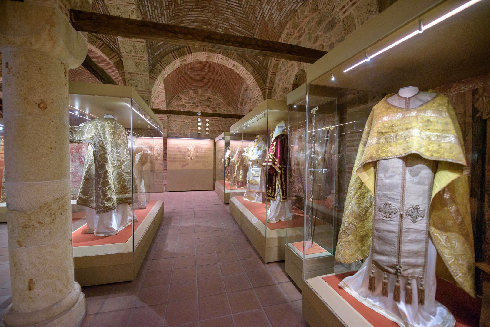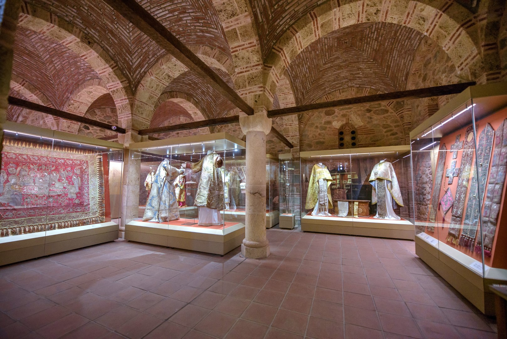Τέλος, σηµαντικό χώρο στο ανακαινισµένο µουσείο καταλαµβάνει η πλούσια όσο και πολύτιµη συλλογή εκκλησιαστικών υφασµάτων µε αξιόλογα δείγµατα του εργαστηρίου χρυσοκεντητικής που λειτούργησε αδιάλειπτα στη Μονή Βαρλαάµ για τέσσερις και πλέον δεκαετίες, από τα τέλη του 16ου έως και τις αρχές του 17ου αιώνα.