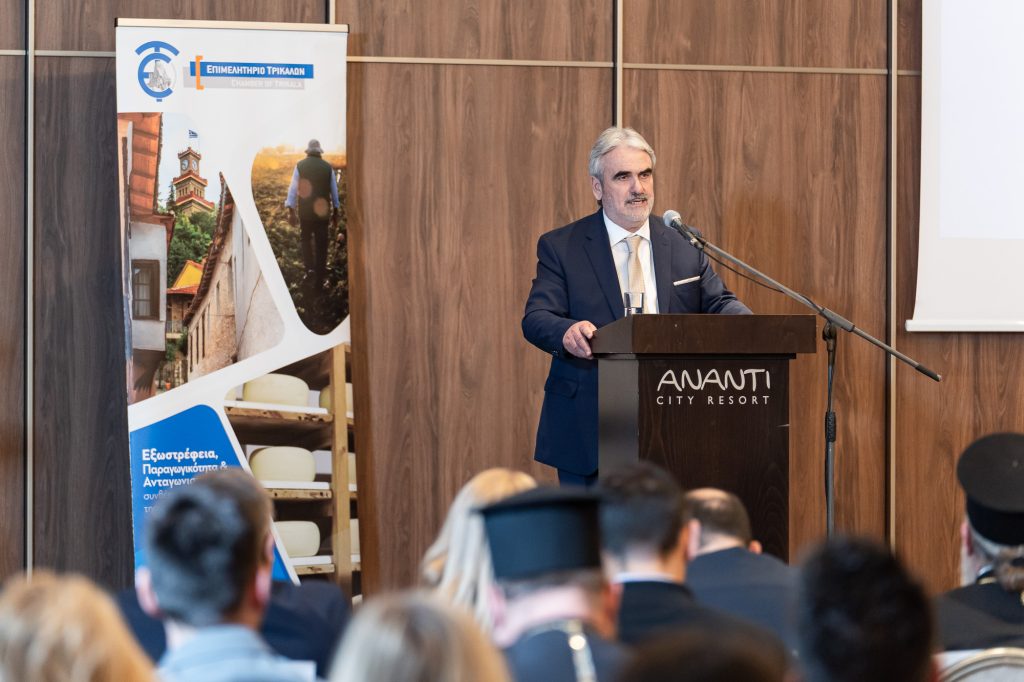 Κοπή πίτας με παρουσίαση των νέων αναπτυξιακών δράσεων του Επιμελητηρίου Τρικάλων το βράδυ της Κυριακής στο ξενοδοχείο ANANTI RESORT, παρουσία των Υπουργών Ανάπτυξης κ. Κώστα Σκρέκα, Ψηφιακής Διακυβέρνησης κ. Δημήτρη Παπαστεργίου, του Περιφερειάρχη Θεσσαλίας κ. Δημήτρη Κουρέτα και εκπροσώπων της Αυτοδιοίκησης, Αρχών και Φορέων καθώς και εκατοντάδων επιχειρηματιών, με ενσυναίθηση για τα προβλήματα που άφησε πίσω της η θεομηνία Daniel στην επιχειρηματική κοινότητα και γενικότερα στην τοπική κοινωνία αλλά και ανάδειξη της αξίας της προσφοράς και του εθελοντισμού.