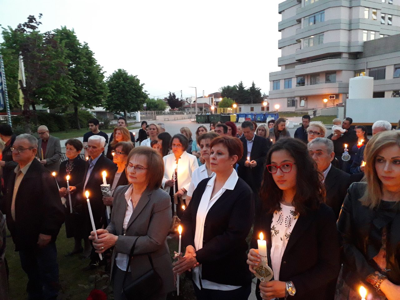 Ο Σεβασμιώτατος μεταλαμπάδευσε το Άγιο Φως ευχόμενος ταχεία ανάρρωση στους ασθενείς και καλή δύναμη και υπομονή στους συγγενείς τους. Ομίλησε δε καταλλήλως για το νόημα της Αναστάσεως.