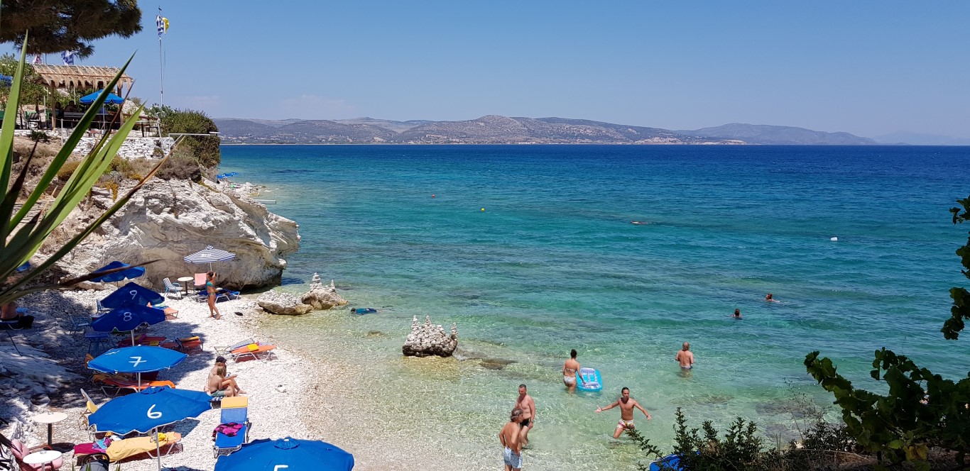 Εκεί που απόκρημνα βράχια συναντούν τα γαλαζοπράσινα νερά του Αιγαίου, στην περίφημη Papas Beach της Σάμου… συναντούμε και τον Τρικαλινό Κώστα Μουστάκα, με την οικογένειά του.
