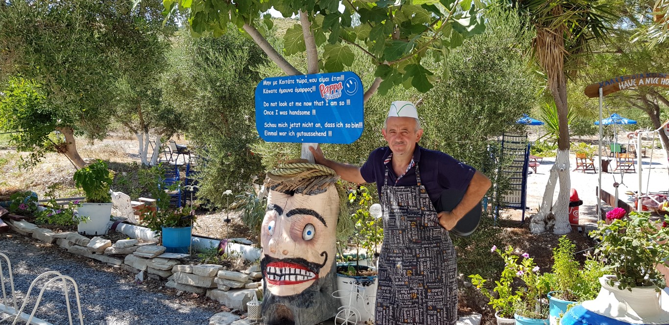 Ο Κώστας Μουστάκας ερωτεύτηκε (… σφόδρα) τη Σαμιώτισσα Μαρία, κόρη του θρυλικού παπα Νικόλα, εφημερίου του χωρίου Παγώδνα της Σάμου. Ο παπάς (… ιδιαίτερα χαρισματικός) είχε ένα καλυβάκι στην άκρη των βράχων για να αγναντεύει το απέραντο γαλάζιο. Σε αυτό το καλυβάκι επένδυσαν τα όνειρά τους οι νέοι τότε Κώστας και Μαρία και από το 1993 προσφέρουν τα πιο νόστιμα φαγητά (… κεφτεδάκια μαμαδίστικα, ομελέτες, γύρο σπιτικό και μαγειρευτά κάθε μέρα) δροσερούς καφέδες και αναψυκτικά στους πιστούς τους παραθεριστές.