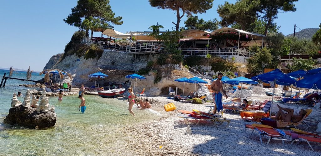 Εκεί που απόκρημνα βράχια συναντούν τα γαλαζοπράσινα νερά του Αιγαίου, στην περίφημη Papas Beach της Σάμου… συναντούμε και τον Τρικαλινό Κώστα Μουστάκα, με την οικογένειά του.