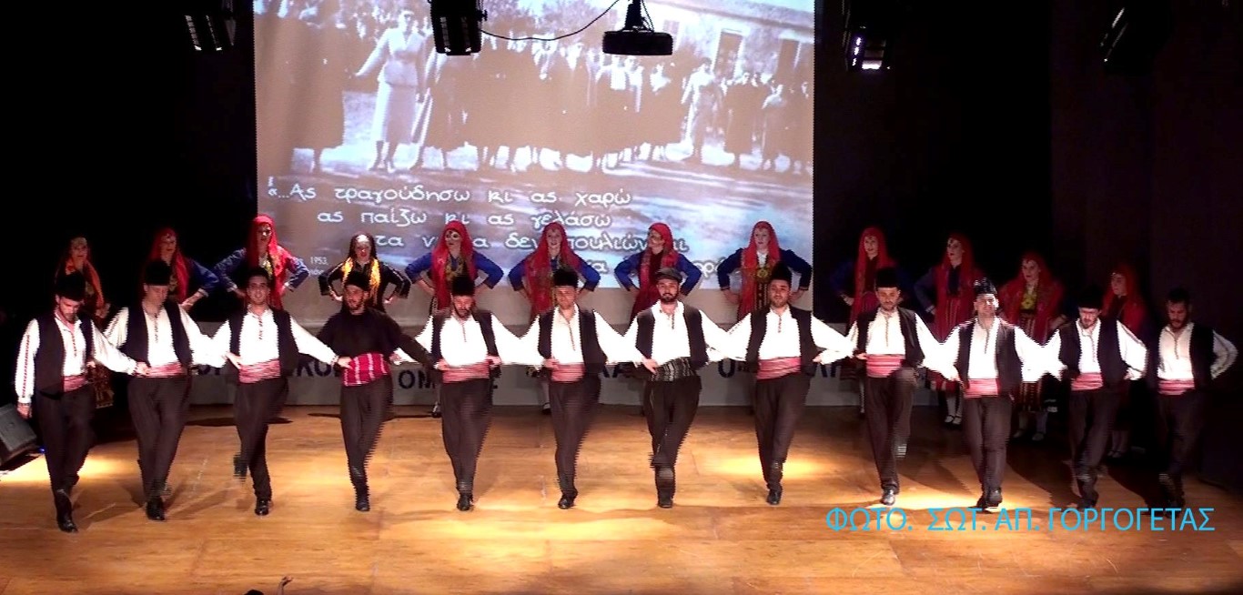 Ακολούθησαν τα παιδικά τμήματα,οι συνεχιστές της πολιτιστικής μας κληρονομιάς,τα οποία με μοναδική ,ζωντάνια,και αρτιότητα ξεδείπλωσαν τις χορευτικές τους ικανότητες και κέρδισαν τα παρατεταμένα χειροκροτήματα. –Στη συνέχεια ένα μοναδικό θέαμα ,γνήσια παραδοσιακό ,με χορούς από τη ν Ηπειρο, Μακεδονία ,Θράκη,Ανατολική Ρωμυλία, όπου χορευτές και χορεύτριες ήταν χάρμα οφθαλμών,με συγχρωνισμό στις κινήσεις, έκφραση και ομορφιά, με πρωτοχορευταράδες τον Λουκά Κοντονάσιο, Κώστα Τζιμούρτο και Χρήστο Σούλιο,ξεδείπλωσαν το ταλέντο τους ,την δύναμή τους και το ακαταμάχητο χορευτικό τους ύφος. Επίσης, οι πρωτοχορεύτριες Ράνια Ζαχαράκη στη Μακεδονία και Σταυρούλα Σούλιου στην Καραγκούνα Αρχόντισσες. Αμέσως μετά χοροί και τραγούδια από την Κύπρο , με σπουδαστές στα ΣΕΦΑΑ από την Κύπρο , συγκίνησαν με τους πανέμορφους χορούς και καταχειροκροτήθηκαν. –Το πρόγραμμα έκλεισε με λα’ι’κούς χορούς και τραγούδια,σ΄ένα ανεπανάληπτο , πρόγραμμα.Εντυπωσιακό το άνοιγμα του λα’ι’κού προγράμματος,με την Δραπετσώνα ,που τραγούδησε ο Μπάμπης Αντωνίου και το εκπληκτικό ζεμπέίκικο,από τον δάσκαλο Χρήστο Σούλιο,όπου αποτυπώνονταν στο ύφος του, ο πόνος,η αξιοπρέπεια και η λεβεντιά,ό,τι χρειάζεται να αποδόσει , ο χορευτής σ΄αυτό το ιστορικό τραγούδι.Ακολούθησαν συρτάκι- χασάπικα-απτάλικο και άλλα.