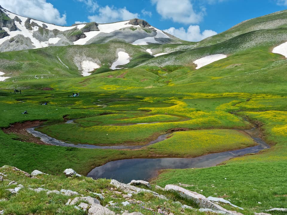 Εκεί δημιουργείται μια δρακόλιμνη από τα νερά του χιονιού που λιώνουν και δημιουργούν ένα τοπίο απαράμιλλης φυσικής ομορφιάς.