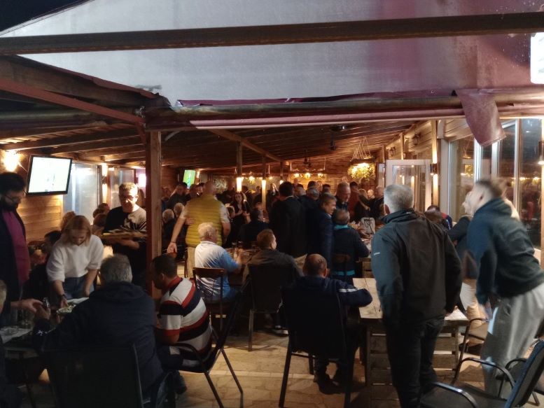 Είχε προηγηθεί ομιλία του το μεσημέρι σε κατάστημα στα Αμπελάκια Τρικάλων και σε δημότες του Δήμου Πύλης που μένουν στα Τρίκαλα. Εκεί σε μια κατάμεστη από κόσμο αίθουσα του μαγαζιού, αλλά και με πολλούς ακόμα συνδημότες που κατέκλυσαν τον αύλειο χώρο, ο Κώστας Μαράβας αναφέρθηκε στα έργα που πραγματοποίηση η Δημοτική Αρχή και πολλά από αυτά είναι σε εξέλιξη και ξεπερνούν τα 30 εκατομμυρίων ευρώ. Κλείνοντας τους μετέφερε το μήνυμα της μεγάλης νίκης από τα τοπικά διαμερίσματα του Δήμου Πύλης, που επισκέφθηκε τις προηγούμενες ημέρες.