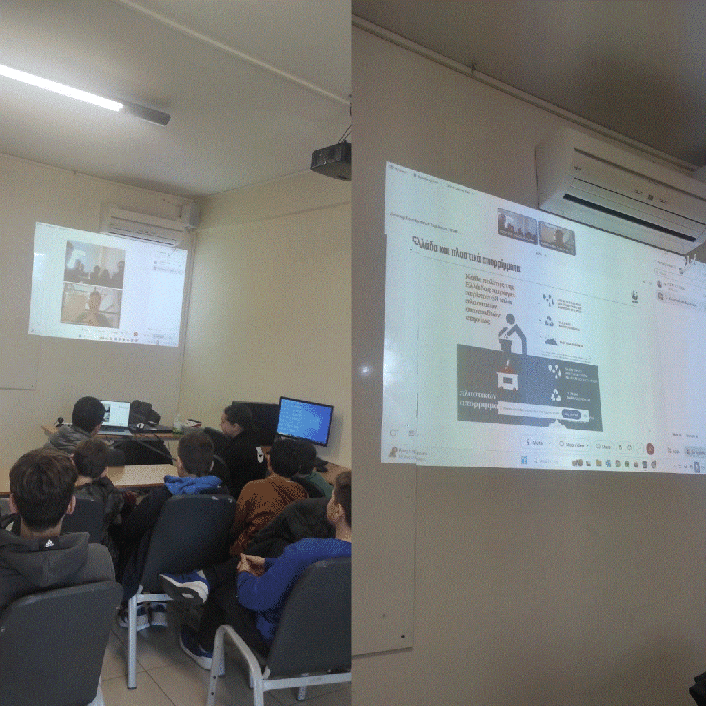 Η πρώτη ενημέρωση έγινε στις 6 Μαρτίου 2024 από κ. Κωνσταντίνο Τσουκαλά, υπεύθυνο προγραμμάτων του WWF για τα πλαστικά και τα απορρίμματα. Τα παιδιά είχαν την ευκαιρία να ενημερωθούν εκτενώς για το πρόβλημα της πλαστικής ρύπανσης από την καθημερινή χρήση των πλαστικών και τις καταστροφικές συνέπειες που προκύπτουν στις ακτές της Μεσογείου, για τον τρόπο επεξεργασίας των αποβλήτων και τους τρόπους ανακύκλωσης των πλαστικών. Παράλληλα έγινε μια πολύ ενδιαφέρουσα συζήτηση των παιδιών με τον εκπρόσωπο της WWF όσο αφορά τόσο στα σύγχρονα περιβαλλοντικά προβλήματα όσο και στις προτεινόμενες λύσεις τους.
