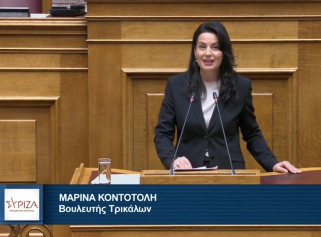 Στην πρώτη της συζήτηση επί του προϋπολογισμού συμμετέχει η βουλευτής Τρικάλων του ΣΥΡΙΖΑ Μαρίνα Κοντοτόλη. Μάλιστα ενεγράφη στον κατάλογο ομιλητών και έθεσε ζητήματα που αφορούν την κοινωνία.