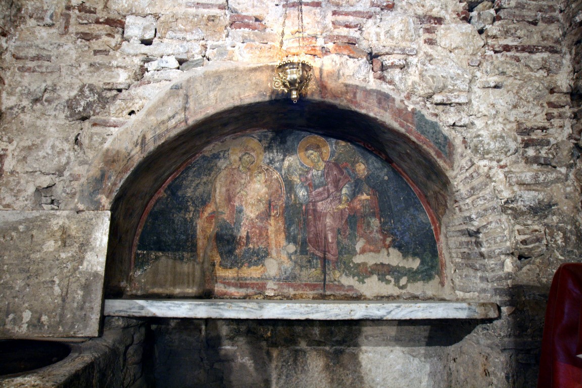 Η κτητορική τοιχογραφία  που βρίσκεται πάνω από τον τάφο του, παριστάνει έναν Άγγελο να κρατάει τον Ιωάννη από το χέρι και να τον οδηγεί προς τη Θεοτόκο. Πρόκειται για εικονογραφία η οποία αναπαριστά  τη μεγάλη ευλάβεια του κτήτορα προς την Παναγία. Όμως, αυτή έχει και την ιστορική της σημασία. Καθότι, διασώζεται μια προσωπογραφία της επιφανούς βυζαντινής οικογένειας των Αγγέλων Κομνηνών,  που εξουσίασε την Ήπειρο και τη Θεσσαλία για περισσότερο από έναν αιώνα.  Νεώτερες έρευνες από την Ιταλία, θέλουν την Πόρτα Παναγιά ως έναν από τους ιερούς τόπους απ’ όπου πέρασαν τα χτίσματα και τα ιερά κειμήλια από την οικία της Θεοτόκου που βρισκόταν στη Ναζαρέτ, για να καταλήξουν στο Λορέτο.