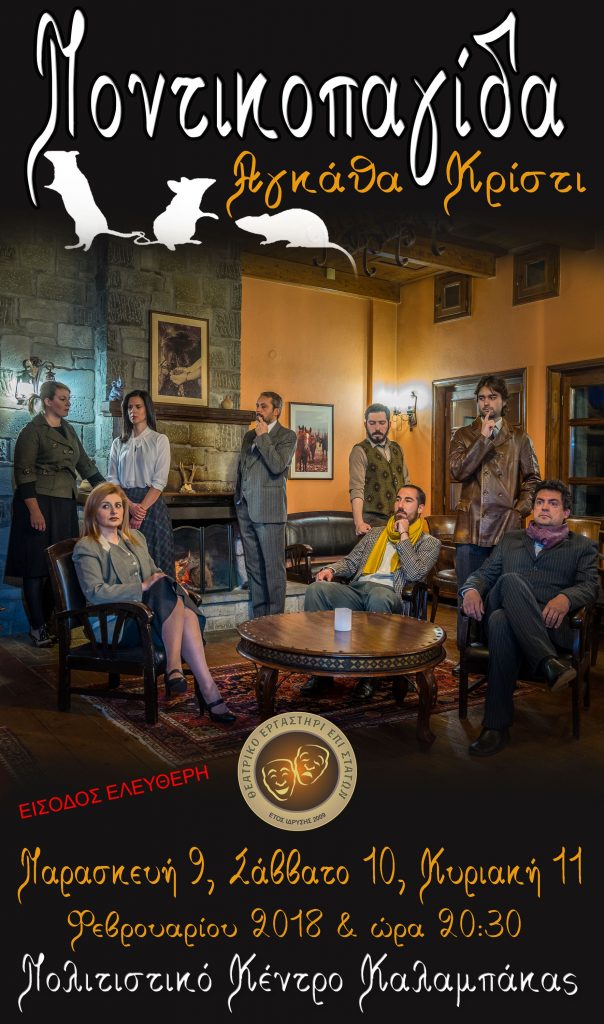 Το Θεατρικό Εργαστήρι «Επί Σταγών» στέκεται με θαυμασμό μπροστά στο ξεχωριστό θεατρικό έργο της Αγκάθα Κρίστι « Η Ποντικοπαγίδα» και το ανεβάζει με απόλυτο σεβασμό, όπως αρμόζει το μακροβιότερο έργο στην ιστορία του παγκόσμιου θεάτρου, καθώς παίζεται συνεχώς στο Γουέστ Εντ του Λονδίνου από τις 25 Νοεμβρίου 1952 έως σήμερα.