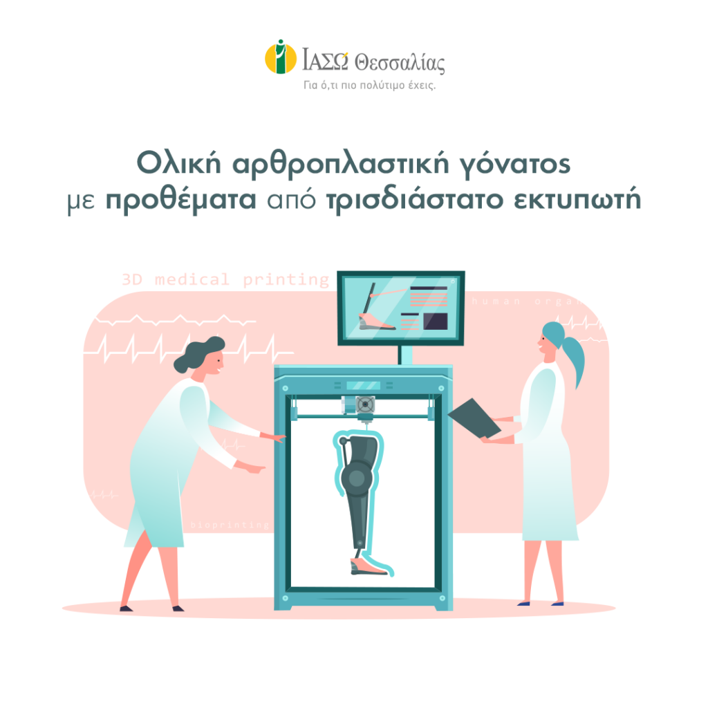 Mε απόλυτη επιτυχία πραγματοποιήθηκε στο ΙΑΣΩ Θεσσαλίας η πρώτη εξατομικευμένη custom made & custom fit ολική αρθροπλαστική γόνατος από την ομάδα της Β΄ Ορθοπαιδικής Κλινικής Αθλητικών Κακώσεων, τους Δ/ντες Ορθοπαιδικούς Χειρουργούς Θωμά Μέλλο και Χρόνη Δρούγια με συνεργάτες τους Ορθοπαιδικούς Χειρουργούς Νίκο Καραμανή, Αθανάσιο Κουτή και την Αναισθησιολόγο Ελευθερία Τουτουνοπούλου.