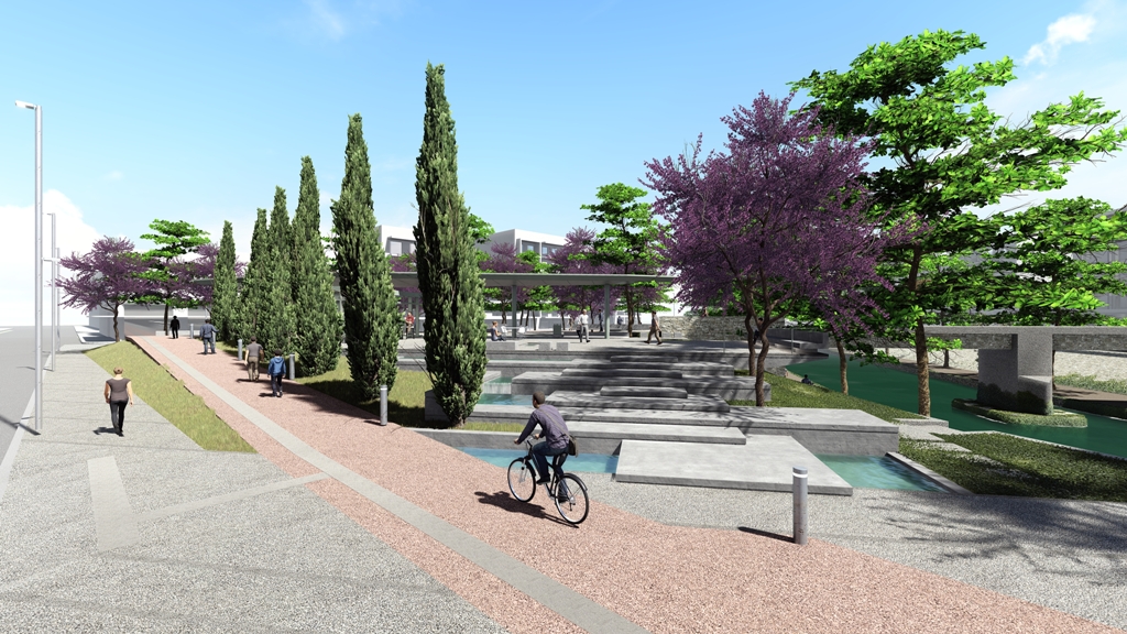 – Δημιουργείται μικρό αμφιθέατρο – χώρος ξεκούρασης επίσης δίπλα από τη γέφυρα