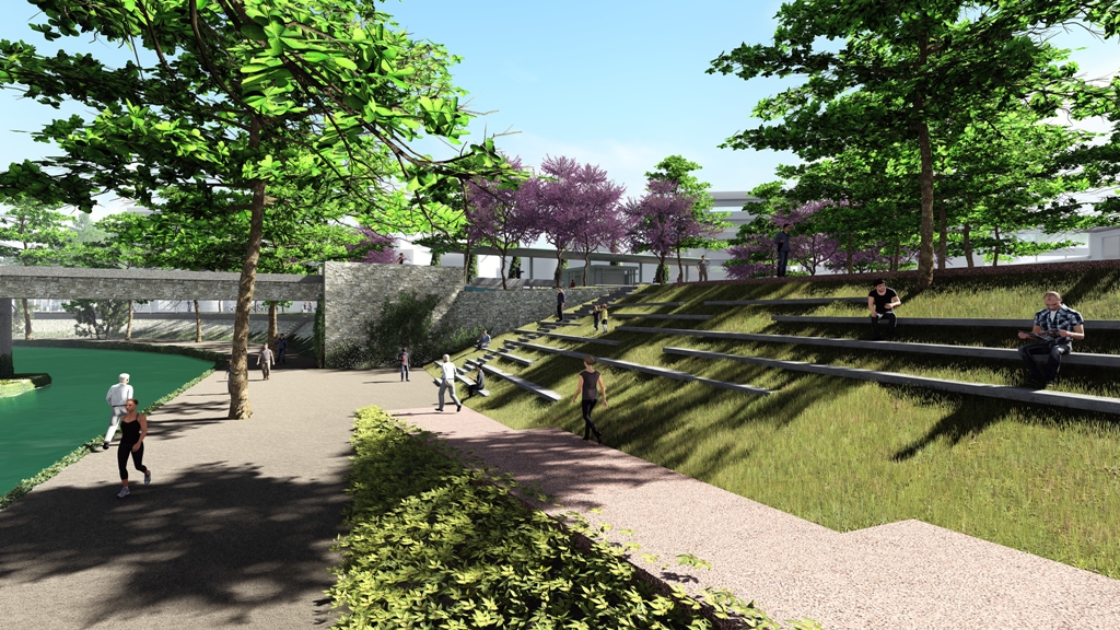 – Δημιουργείται μικρό αμφιθέατρο – χώρος ξεκούρασης επίσης δίπλα από τη γέφυρα