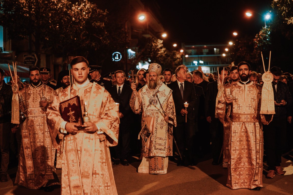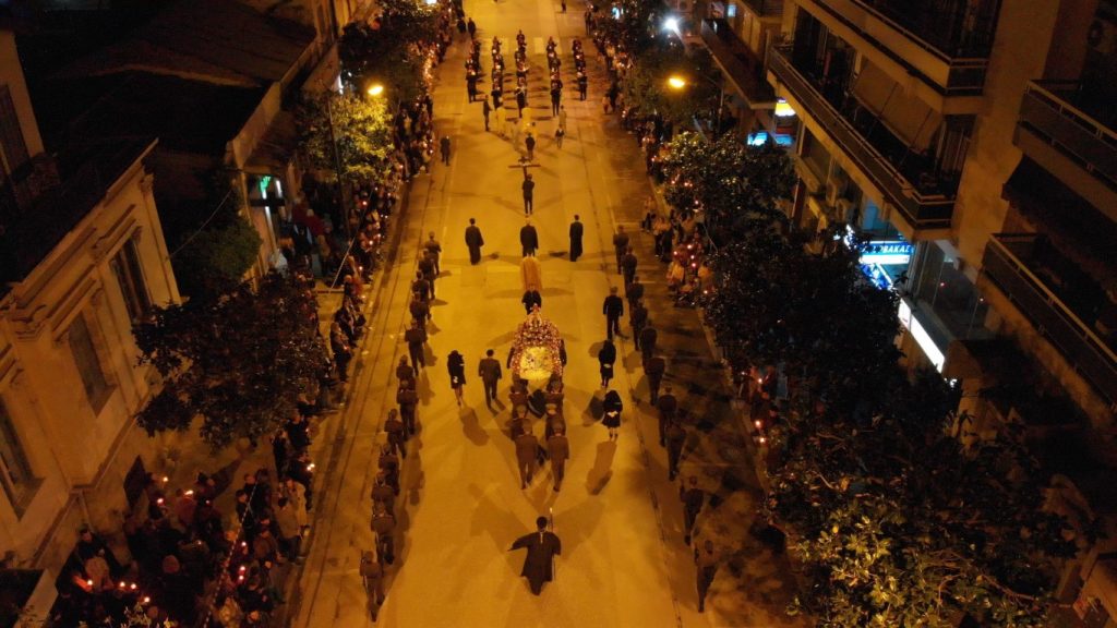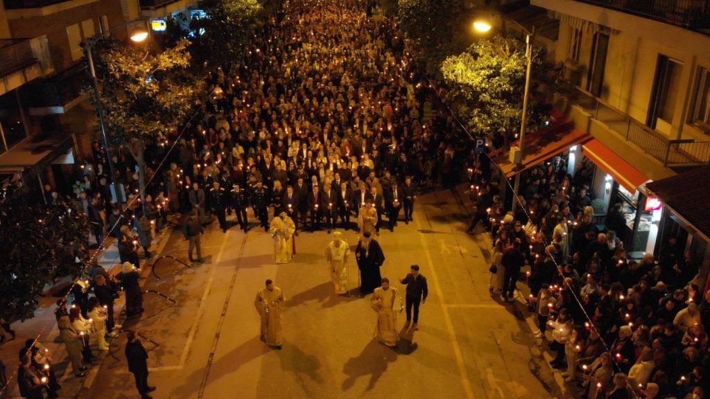Λίγο μετά τις 9.30 το βράδυ ξεκίνησαν οι πομπές από τις Ενορίες της πόλεως για τη συνάντηση στην κεντρική πλατεία. Ο Μητροπολίτης Τρίκκης, Γαρδικίου και Πύλης Χρυσόστομος χοροστάτησε στον Μητροπολιτικό Ναό Αγίου Νικολάου, προεξήρχε της πομπής που αναχώρησε από το Ναό κάνοντας αναφορά την αρχή των πάντων, την Ανάσταση του Κυρίου ημών Ιησού Χριστού. Το trikalavoice.gr θέλοντας να δώσει ακόμη καλύτερη αίσθηση των γεγονότων κάλυψε και τη φετινή συνάντηση, σε συνεργασία με τους Φώτη Πάσσο–Βαγγέλη Ανυφαντή, με λήψη πλάνων από drone. Ζήστε ξανά το πνεύμα της Αγίας και Μεγάλης Παρασκευής μέσα από το μοναδικό μας βίντεο και τα… δεκάδες “κλικ” μας. Καλή Ανάσταση…