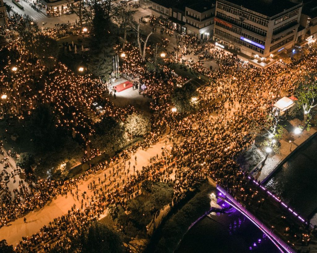 Λίγο μετά τις 9.30 το βράδυ ξεκίνησαν οι πομπές από τις Ενορίες της πόλεως για τη συνάντηση στην κεντρική πλατεία. Ο Μητροπολίτης Τρίκκης, Γαρδικίου και Πύλης Χρυσόστομος χοροστάτησε στον Μητροπολιτικό Ναό Αγίου Νικολάου, προεξήρχε της πομπής που αναχώρησε από το Ναό και στην πλατεία μίλησε στα πλήθη για την αρχή των πάντων, την Ανάσταση του Κυρίου ημών Ιησού Χριστού.