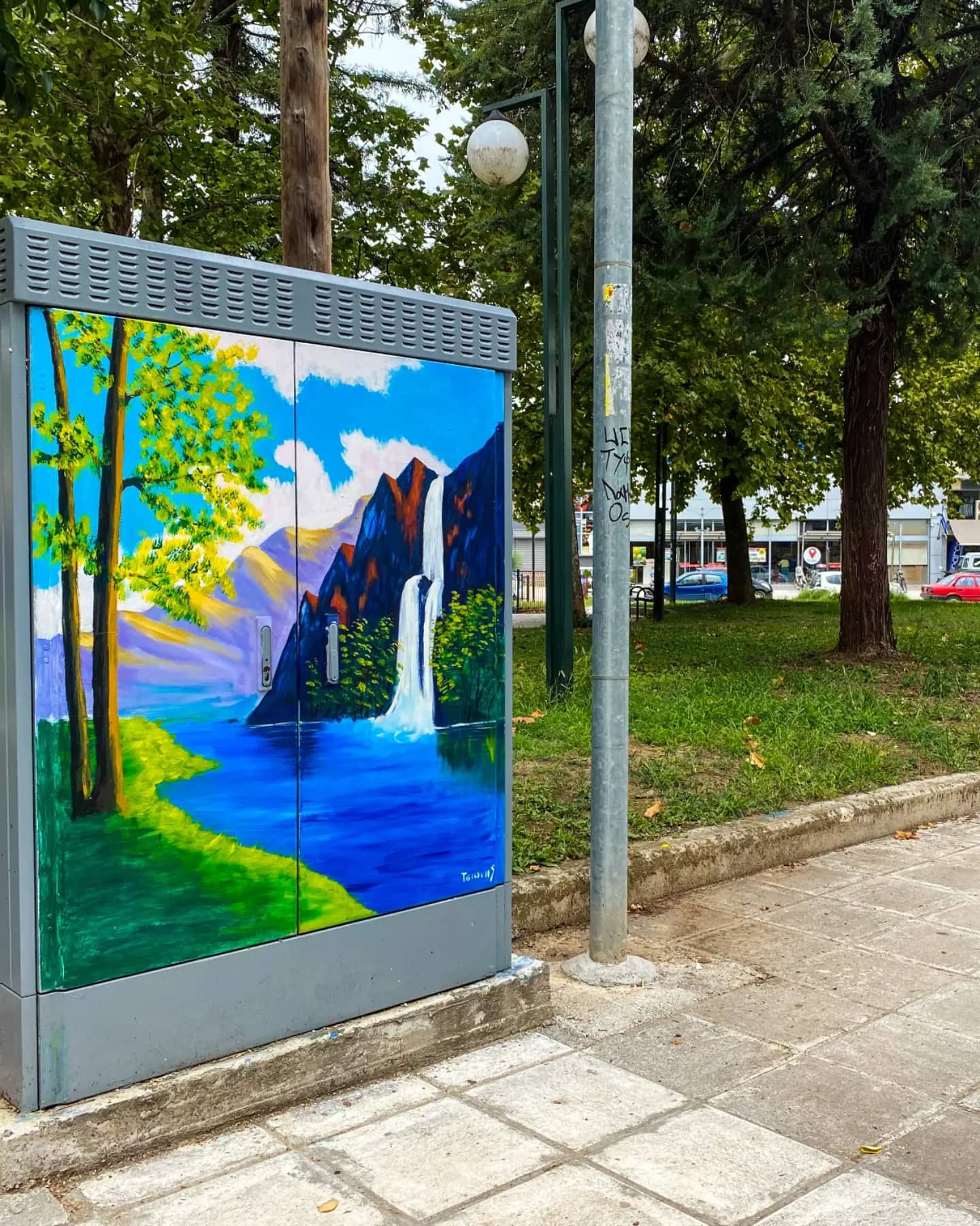 Τα Τρίκαλα αποκτούν χρώμα στους δρόμους και μέσα από πρωτοβουλίες εικαστικών και σε συνεργασία με το Δήμο ακόμη και τα “άσχημα” ΚΑΦΑΟ μετατρέπονται σε μοναδικά έργα τέχνης μπροστά στα οποία αξίζει να φωτογραφηθεί κανείς.