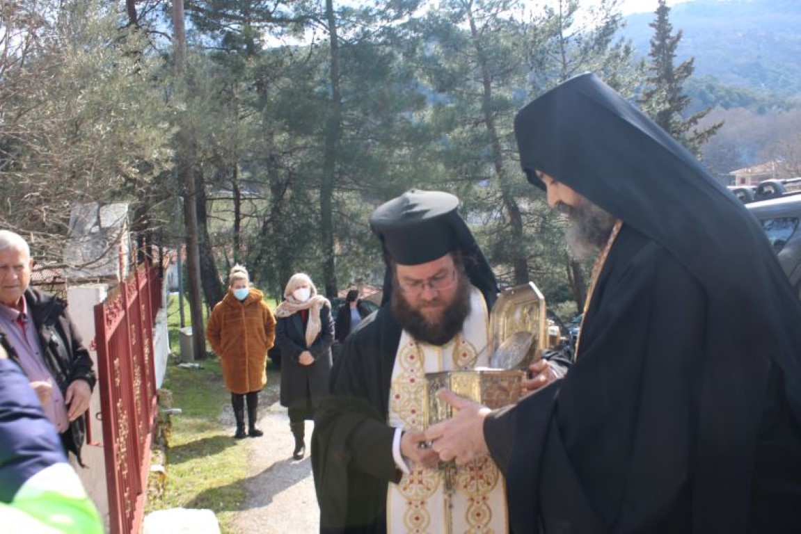Με την δέουσα λαμπρότητα και θρησκευτική Κατάνυξη έγινε η Υποδοχή της Τίμιας Κάρας του Αγίου Βησσαρίωνος, το Σάββατο 12/3 στις 15.00 ανήμερα της Εορτής των Αγίων Θεοδώρων όπου εκομίσθει από τον Ιερομόναχο Αρχιμανδρίτη Βαρθολομαίο από την Ιερά Μονή Αγίου Βησσαρίωνος (ΔΟΥΣΙΚΟΥ) και την υποδέχτηκαν στα Προπύλαια του Ιερού Ναού Αγίας Τριάδος Αγίου Βησσαρίωνος, ο Καθηγούμενος της Ιεράς Μονής Αγίου Προκοπίου, Διονύσιος Κλάδης και ο Αρχιμανδρίτης της ιδίας Μονής Προκόπιος Κλάδης, Καθώς επίσης και ο Πρεσβύτερος Πατέρας Βασίλειος Πανάγος και αρκετοί πιστοί.