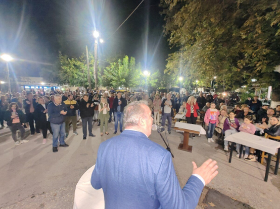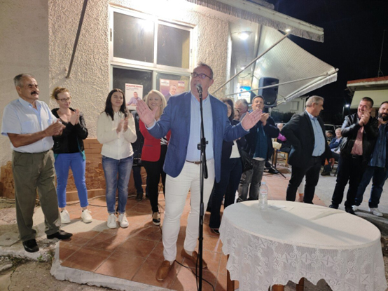 Στο τέλος της ομιλίας του παρουσίασε τους τοπικούς υποψηφίους και κάλεσε τον κόσμο να δώσει ηχηρό παρών στην αποψινή κεντρική προεκλογική ομιλία στην Πύλη.
