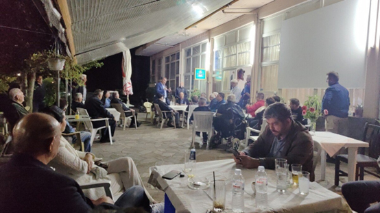 Η υποδοχή των κατοίκων ήταν ενθουσιώδης στο κεφαλοχώρι του πρώην δήμου Πιαλείων και μάλιστα διέκοπταν συχνά τον γιατρό για να τον χειροκροτήσουν, αφού τους ενημέρωσε διεξοδικά για τις βασικές θέσεις του προγράμματος του, αλλά και για θέματα που δεν γνώρισαν σχετικά με την ανάπτυξη της τοπικής επιχειρηματικότητας, με παραγωγή χαρακτηριστικού προϊόντος.