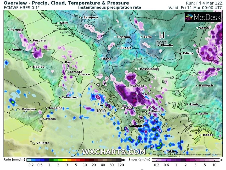 Ιστορικό χιονιά δίνει Αμερικανικό= μοντέλο πρόγνωσης του καιρού. Αν το πιστέψουμε τότε από την ερχόμενη Παρασκευή 11 Μαρτίου θα πρέπει να περιμένουμε μεγάλες ποσότητες χιονιού στα Τρίκαλα!!!…