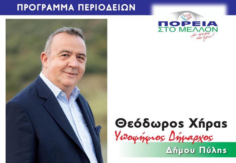 Συνεχίζει με αμείωτη ένταση την περιοδεία του σε χωριά του Δήμου Πύλης, ο υποψήφιος Δήμαρχος Θοδωρής Χήρας, συνοδευόμενους από φίλους του συνδυασμού και υποψηφίους δημοτικούς συμβούλους της παράταξης «Πορεία στο Μέλλον».
