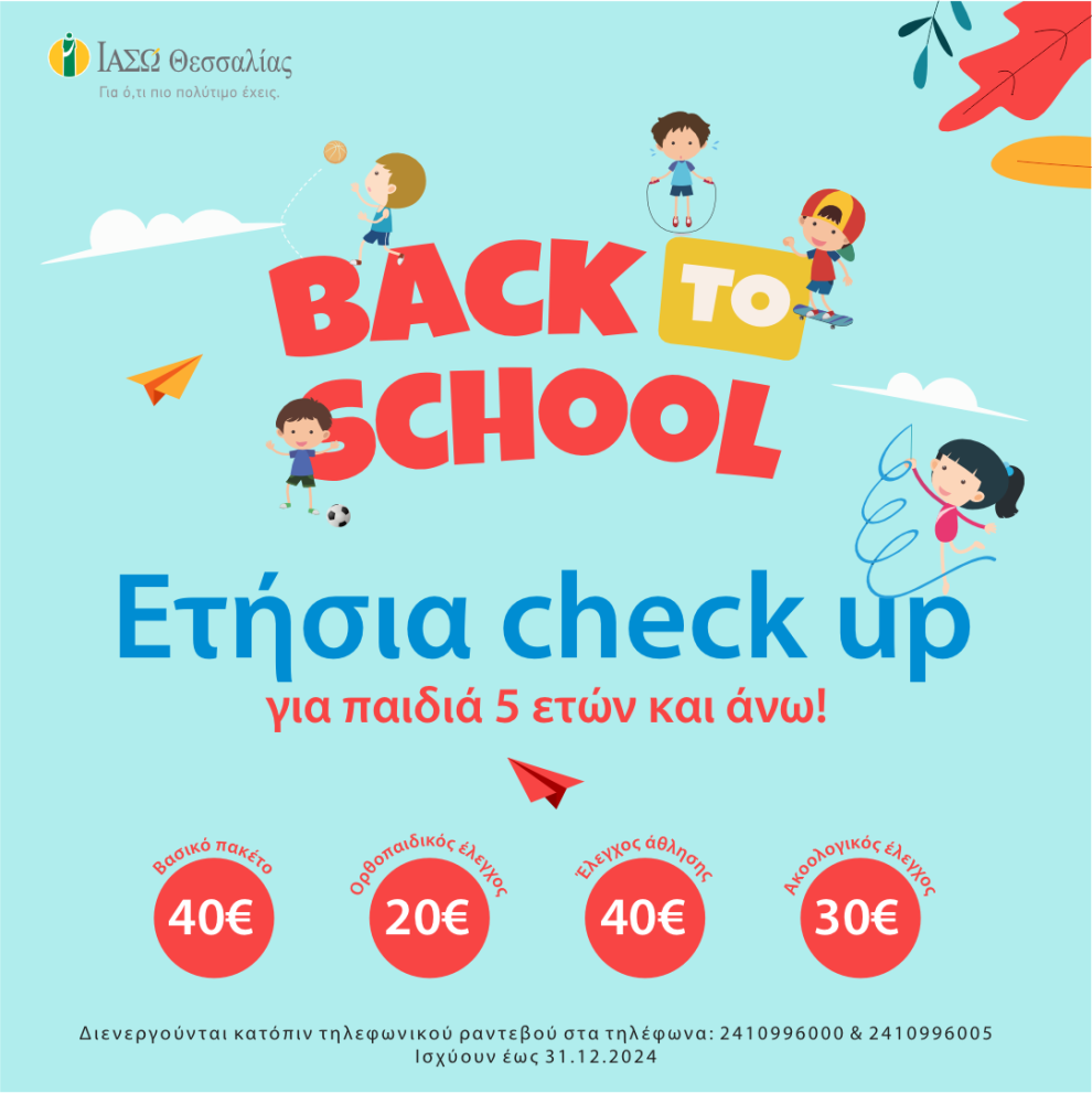 Η επιστημονική ομάδα του ΙΑΣΩ Θεσσαλίας, που φροντίζει για την υγεία των παιδιών σας, σχεδίασε εξειδικευμένα, μοναδικά πακέτα παιδικών check up σε προνομιακές τιμές: