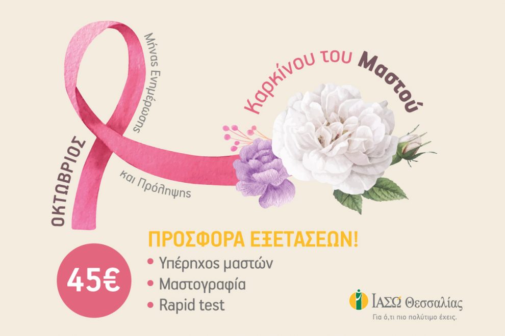 Με αφορμή τη σπουδαία αυτή παγκόσμια καμπάνια ενημέρωσης, το ΙΑΣΩ Θεσσαλίας προσφέρει για ολόκληρο τον Οκτώβριο ένα ξεχωριστό πακέτο εξετάσεων για όλες τις γυναίκες στη μοναδική τιμή των €45, το οποίο περιλαμβάνει: