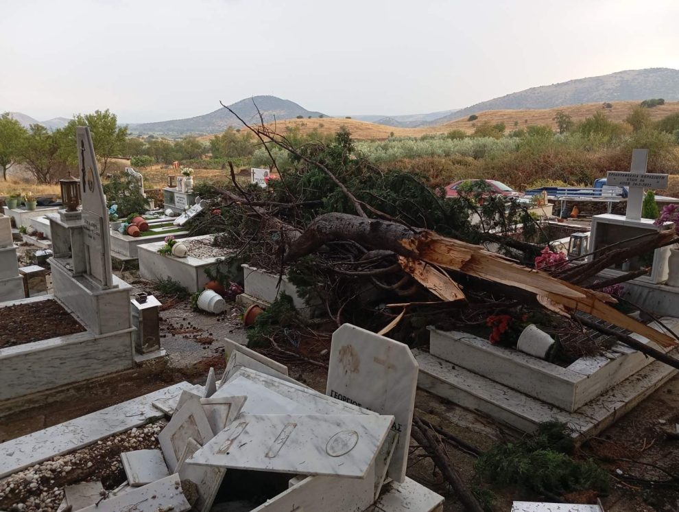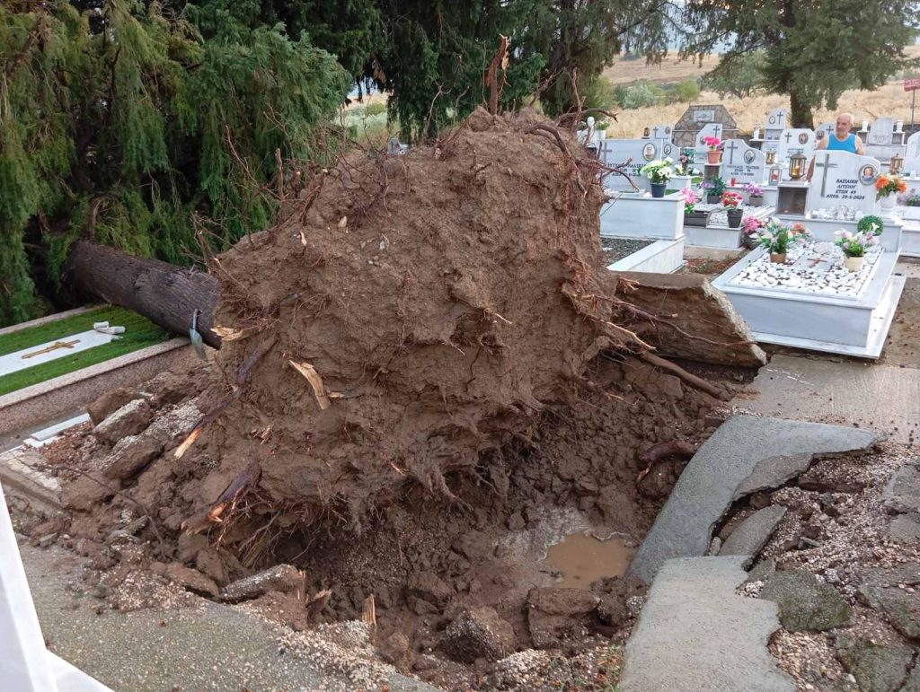 Στο Γριζάνο του Δήμου Φαρκαδόνας ξεριζώθηκαν δέντρα και άνοιξαν τάφους. Δείτε τις απίστευτες εικόνες που κατέγραψε το trikalavoice.gr: