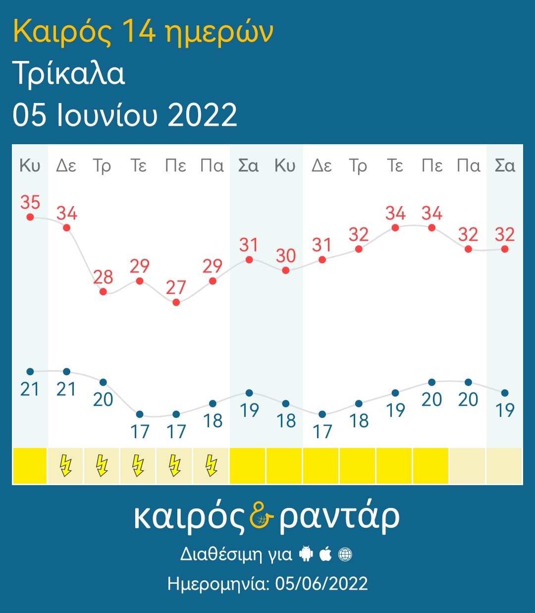 Ισχυρά μπουρίνια τις επόμενες 5 ημέρες στο νομό Τρικάλων κατά τις απογευματινές ώρες της ημέρας. Κίνδυνος χαλαζοπτώσεων και ισχυρών ριπών ανέμου κατά την εκδήλωση των επικίνδυνων φαινομένων. Η θερμοκρασία θα σημειώσει πτώση.