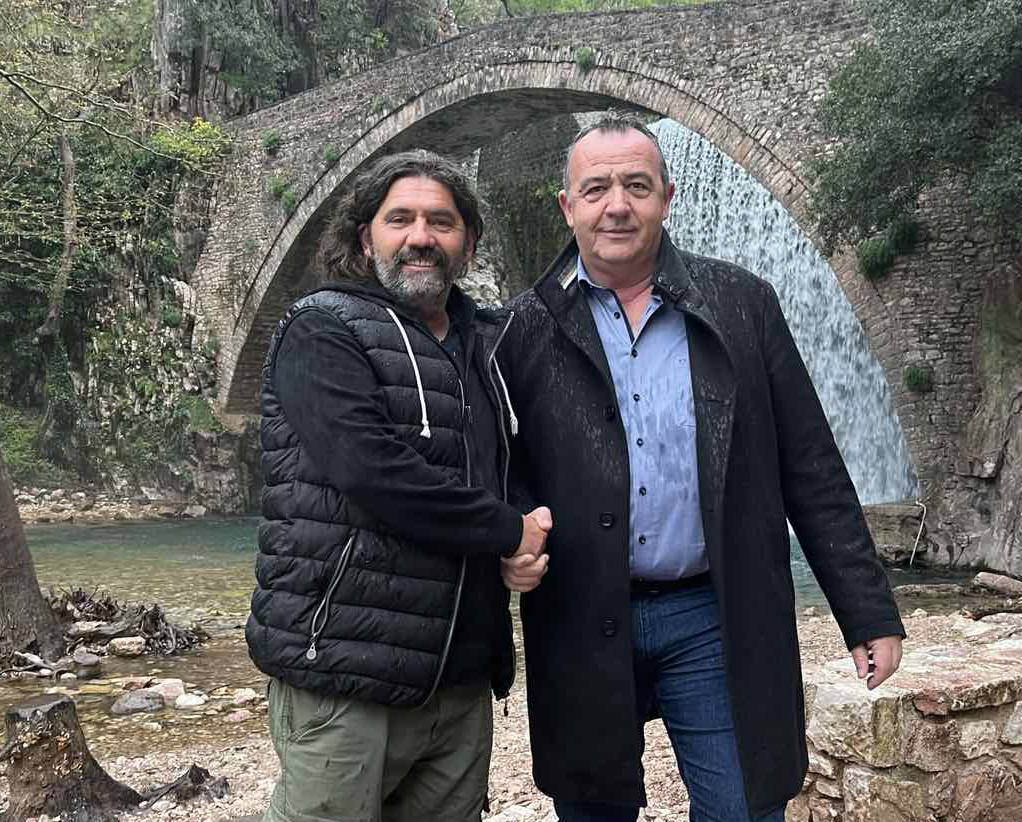 Με φόντο το μοναδικής και απαράμιλλης ομορφιάς τοπίο που συνθέτουν οι καταρράκτες και το μονότοξο γεφύρι της Παλαιοκαρυάς, επισφραγίστηκε η υποψηφιότητα του Κούτσια Γεωργίου με τον συνδυασμό “ΠΟΡΕΙΑ ΣΤΟ ΜΕΛΛΟΝ” και ο κοινός αγώνας του με τον Χήρα Θεόδωρο ενόψει των δημοτικών εκλογών του Οκτωβρίου.