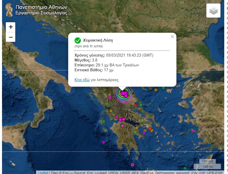 Ιδιαίτερα αισθητός έγινε στην πόλη των Τρικάλων και τη γύρω περιοχή ο ισχυρός μετασεισμός που σημειώθηκε στις 21.43 το βράδυ της Παρασκευής.