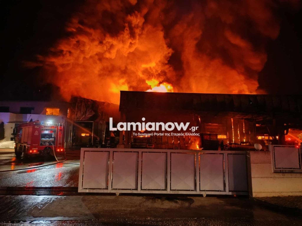 Στις φλόγες παραδόθηκαν λίγο πριν τις 22.00 το βράδυ της Κυριακής οι εγκαταστάσεις της εταιρείας “Γιαννίτσης” στην ΒΙΠΕ Λαμίας. Η καταστροφή είναι ολοκληρωτική για την επιχείρηση μιας και σε λίγο περισσότερο από μια ώρα και παρά τις μεγάλες προσπάθειες των πυροσβεστικών δυνάμεων με 40 πυροσβέστες, 18 οχήματα και ειδικό βραχιονοφόρο η πυρκαγιά πήρε γρήγορα μεγάλες διαστάσεις καταστρέφοντας το κτίριο, αλλά και τα αυτοκίνητα της επιχείρησης που βρισκόντουσαν στον περιβάλλοντα χώρο.