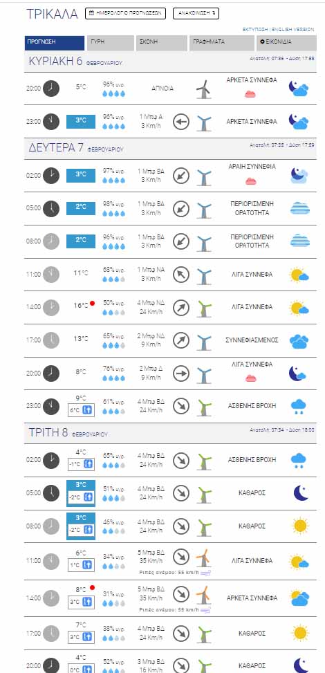 Πιο αναλυτικά, σύμφωνα με τη μετεωρολογική υπηρεσία Meteo του Εθνικού Αστεροσκοπείου Αθηνών, αναμένονται στα Τρίκαλα και στην ευρύτερη περιοχή ομίχλες τις πρωινές ώρες και ισχυροί άνεμοι από την Τρίτη. Από την Τρίτη αναμένεται και πτώση θερμοκρασίας η οποία θα κυμαίνεται περί των… 0 C και μετά βίας θα φτάνει στους 5-6 C μέσα στη βδομάδα.