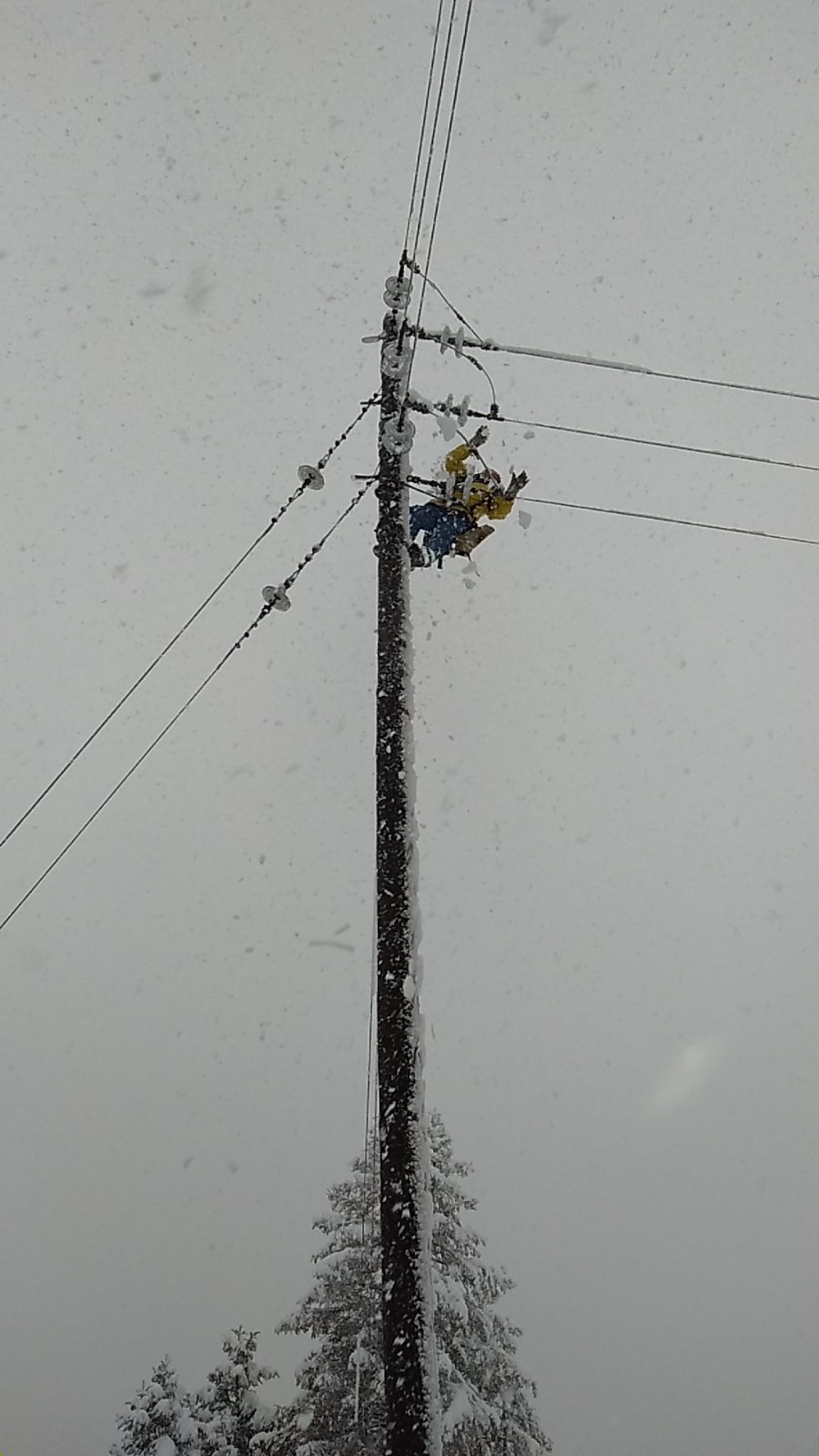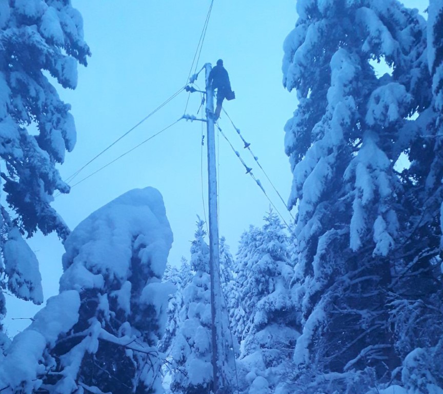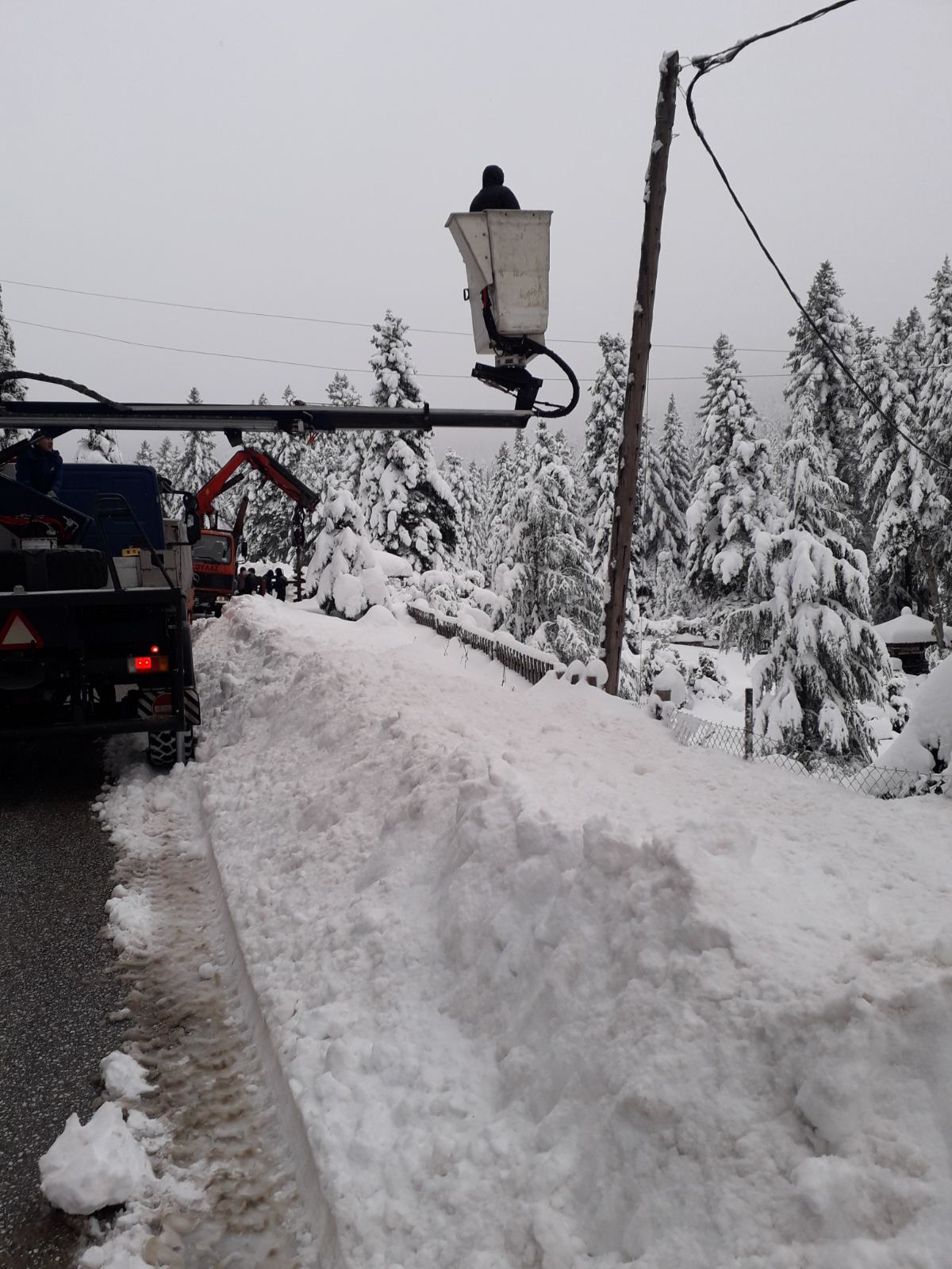 Το βαρύ χιόνι που έπεφτε από το βράδυ της περασμένης Δευτέρας προκάλεσε σοβαρά προβλήματα στην ηλεκτροδότηση ορεινών χωριών της περιοχής μας καθώς έσπασαν καλώδια και κατέρρευσαν κολώνες της ΔΕΗ. Οι τεχνικοί του ΔΕΔΔΗΕ δούλεψαν συνεχόμενα 24ωρα, με το χιόνι να εξακολουθεί να πέφτει και τη θερμοκρασία πολύ κάτω από το 0 C. Τα κατάφεραν και αποκατέστησαν τις ζημιές μέσα σε μερικές ώρες, δίνοντας τελικά ρεύμα σε όλα τα χωριά. Αξίζει εδώ να τονιστεί ότι είχε στηθεί κέντρο επιχειρήσεων για την αποκατάσταση των ζημιών συμμετοχή του αντιπεριφερειάρχη Χρήστου Μιχαλάκη, του δημάρχου Πύλης Κώστα Μαράβα και του προϊσταμένου του ΔΕΔΔΗΕ Βάιου Μπεχλιβάνου. Λειτούργησαν συντονισμένα και τα κατάφεραν. Δείτε χαρακτηριστικές εικόνες του trikalavoice.gr από τη μάχη που έδωσαν καθ’ όλη τη βδομάδα εναερίτες και τεχνικοί του ΔΕΔΔΗΕ: