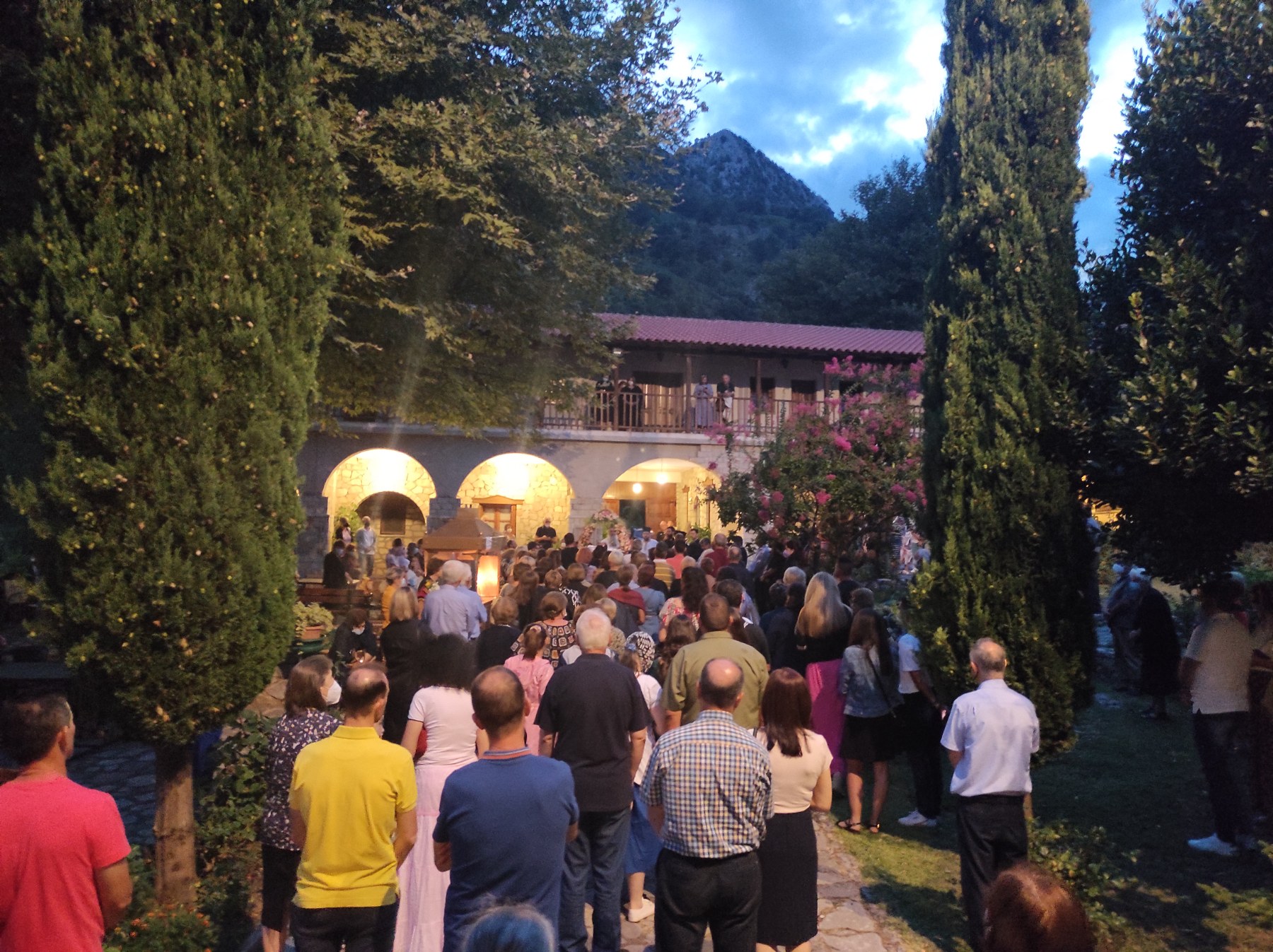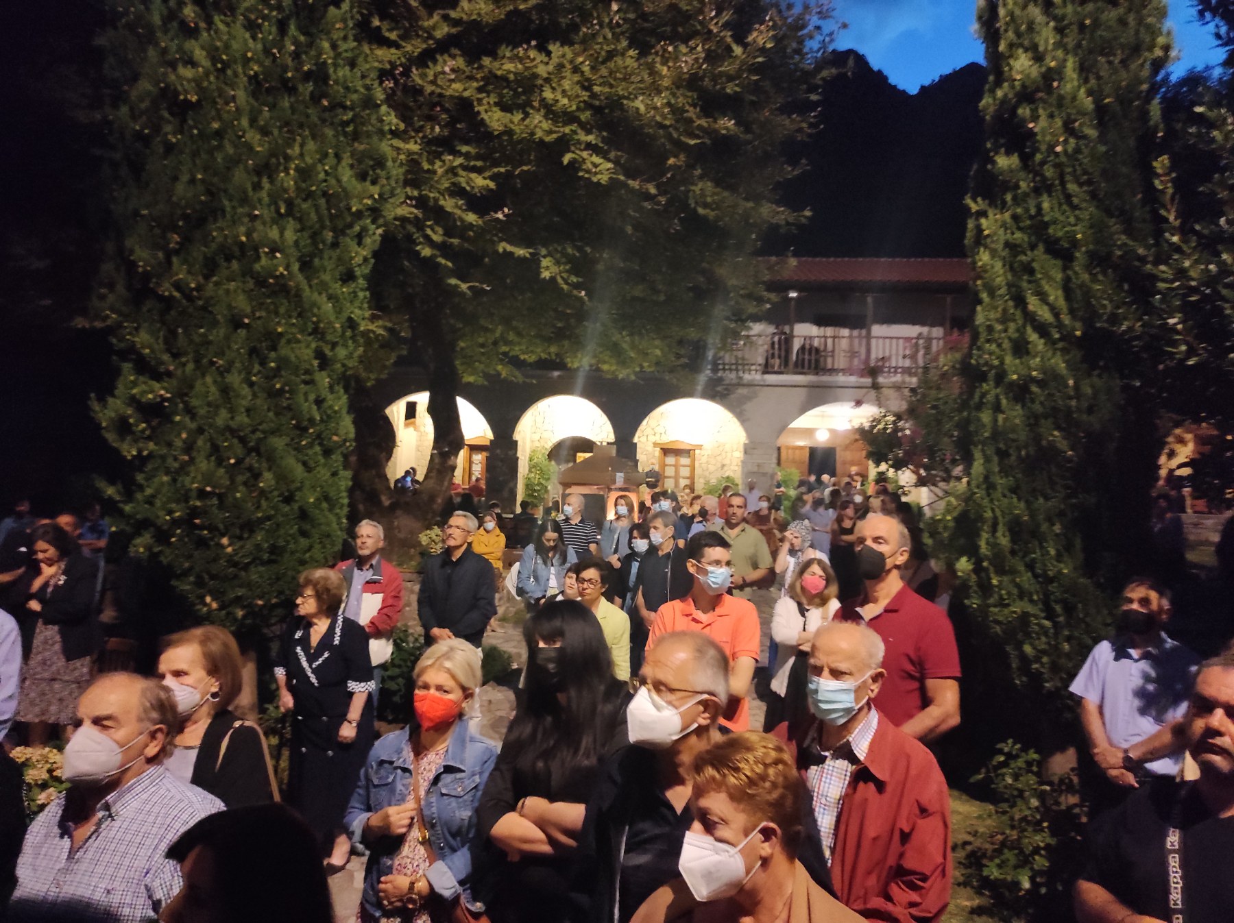 Ο Εσπερινός τελέστηκε υπό του Γενικού Αρχιερατικού Επιτρόπου της Μητροπόλεως Τρίκκης, Γαρδικίου και Πύλης, πατρός Λάμπρου Κολώνα και όπως κατέγραψε το trikalavoice.gr ήταν δεκάδες οι προσκυνητές που ανηφόρισαν στο Μοναστήρι.