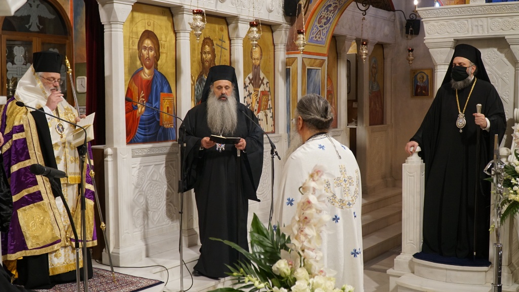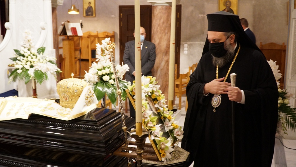 Όπως κατέγραψε το trikalavoice.gr (δείτε ΕΔΩ) η Ακολουθία τελέστηκε στον Προσκυνηματικό Ναό Αγίου Βησσαρίωνος, χοροστατούντος του Μητροπολίτου Διδυμοτείου Δαμασκηνού-πνευματικού τέκνου του Μακαριστού-συγχοροστατούντων των Μητροπολιτών Σταγών & Μετεώρων Θεοκλήτου και Θεσσαλιώτιδος και Φαναριοφερσάλων Τιμοθέου και από θρόνου ο επιχώριου Μητροπολίτου Τρίκκης και Σταγών Χρυσοστόμου. Σταθερά δίπλα του από το σκήνωμα του Μακαριστού Ιεράρχου από τις 10 π.μ. οπότε και τελέστηκε ενώπιόν του Αρχιερατική Θεία Λειτουργία ιερουργούντος του κ. Τιμοθέου, ο Πρωτοσύγκελλος της Ιεράς Μητρόπολης Τρίκκης και Σταγών και πνευματικό ανάστημά του, Αρχιμανδρίτης Αλέξιος Κανίνας.