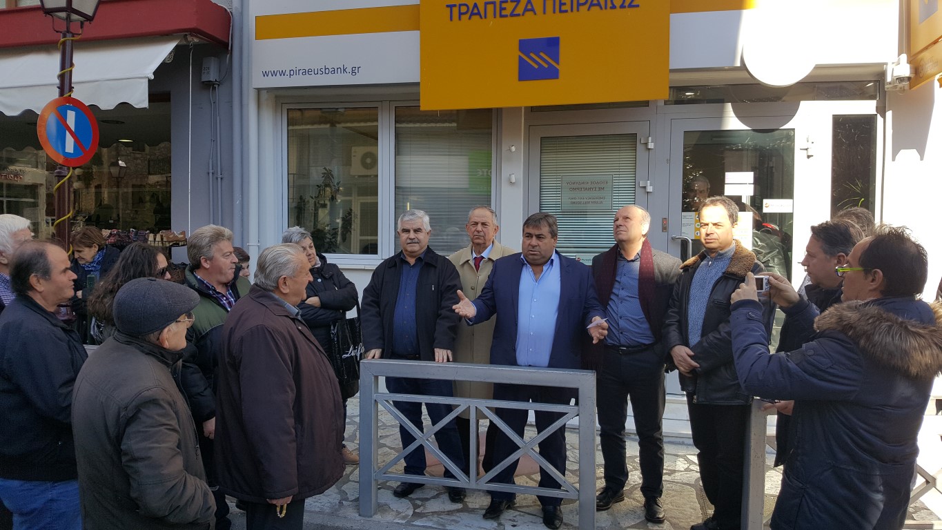 Όπως σημείωσαν και συμφώνησαν όλοι δεν είναι δυνατόν ένας ολόκληρος Δήμος 20.000 κατοίκων, όπου λειτουργούν τα μεγαλύτερα εργοστάσια του Νομού (ΤΥΡΑΣ, La Farm, ΒΙΟΣΑΛ κλπ.) να μείνει χωρίς κατάστημα της μεγαλύτερης ελληνικής τράπεζας. Εκδόθηκε ψήφισμα, έγινε πορεία προς το κατάστημα και συμβολικός αποκλεισμός αυτού, ενώ «έκλεισε» ραντεβού με την περιφερειακή διοίκηση της Τράπεζας Πειραιώς στη Λάρισα.