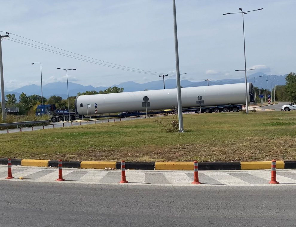 Νέο κομβόι με βάσεις και πτερύγια ανεμογεννητριών πέρασε το πρωί της Πέμπτης από τα Τρίκαλα.