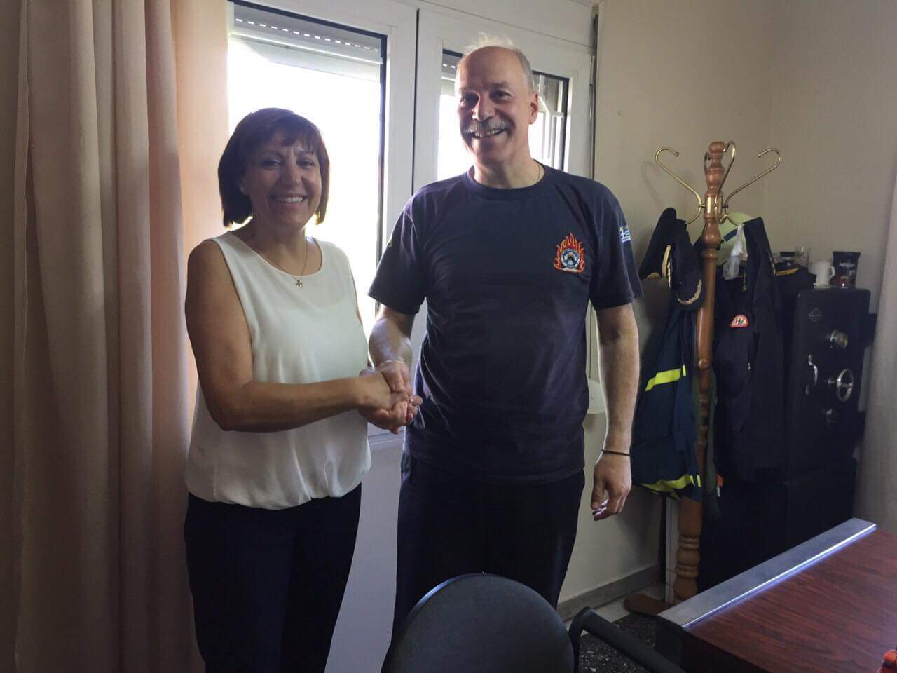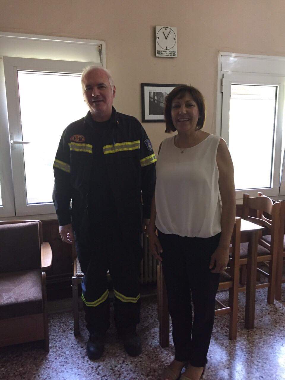 Εκεί ξεναγήθηκε στο χώρο και ενημερώθηκε για τις δραστηριότητες της Υπηρεσίας.Συνομίλησε με πυροσβέστες για τα προβλήματα που καθημερινά αντιμετωπίζουν καθώς καλούνται να πράξουν το καθήκον τους με σοβαρές ελλείψεις και λιγοστά μέσα.