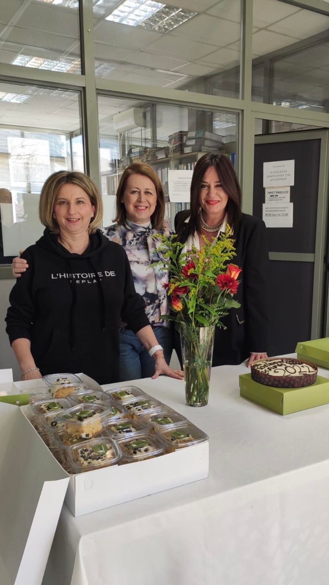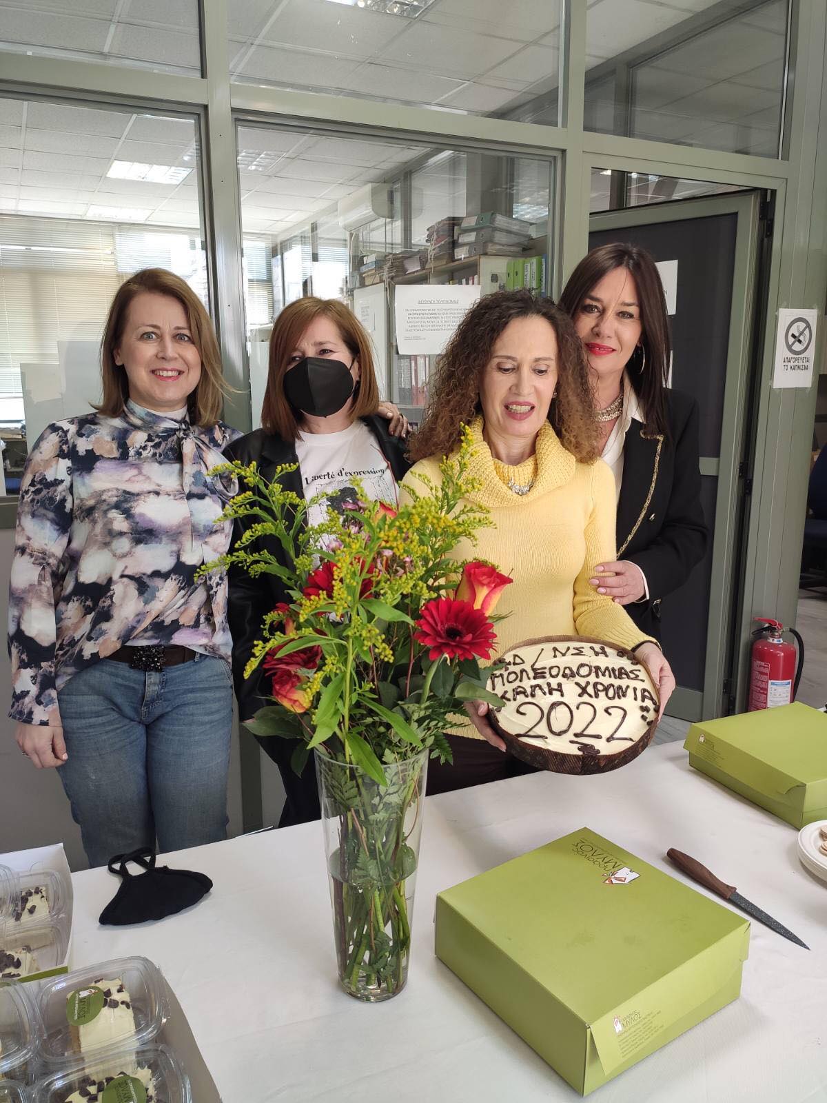 Παρών και ο ίδιος ο δήμαρχος Δημήτρης Παπαστεργίου ο οποίος ευχήθηκε να διατηρήσουν οι υπάλληλοι της Διεύθυνσης το οικογενειακό κλίμα που έχουν φτιάξει και να συνεργάζονται για το καλό των δημοτών. Τα τρία φλουριά (… ένα για κάθε Τμήμα της Διεύθυνσης) και από μια μέρα άδεια κέρδισαν οι Δήμητρα Ντέρη, Άννυ Τσιγαρίδα και Στέφανος Δημητρίου