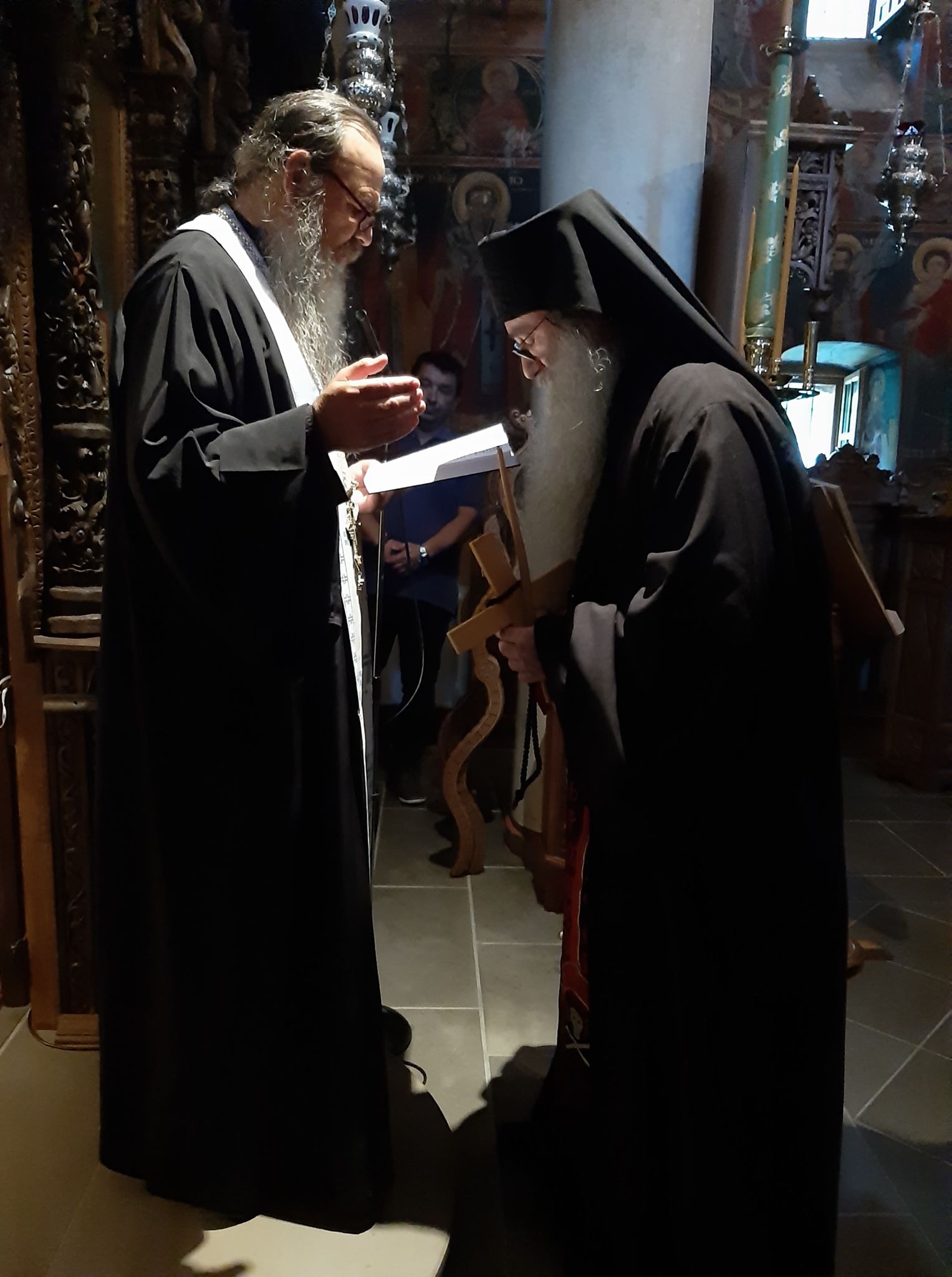Συγκεκριμένα και όπως κατέγραψε το trikalavoice.gr τέλεσε την ακολουθία του Εσπερινού και αμέσως μετά την εις Μεγαλόσχημον Κουρά του μοναχού Ραφαήλ Ντάλλα στην Ιερά Μονή Αγίου Νικολάου Σιαμάδων, παρουσία του Ηγουμένου αυτής Αρχιμανδρίτου Μακάριου Ιακωβάκη και λοιπών κληρικών.