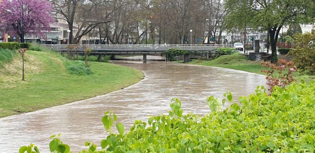 Η συνεχής βροχόπτωση φέρνει το ποτάμι της πόλης των Τρικάλων στα όριά του.