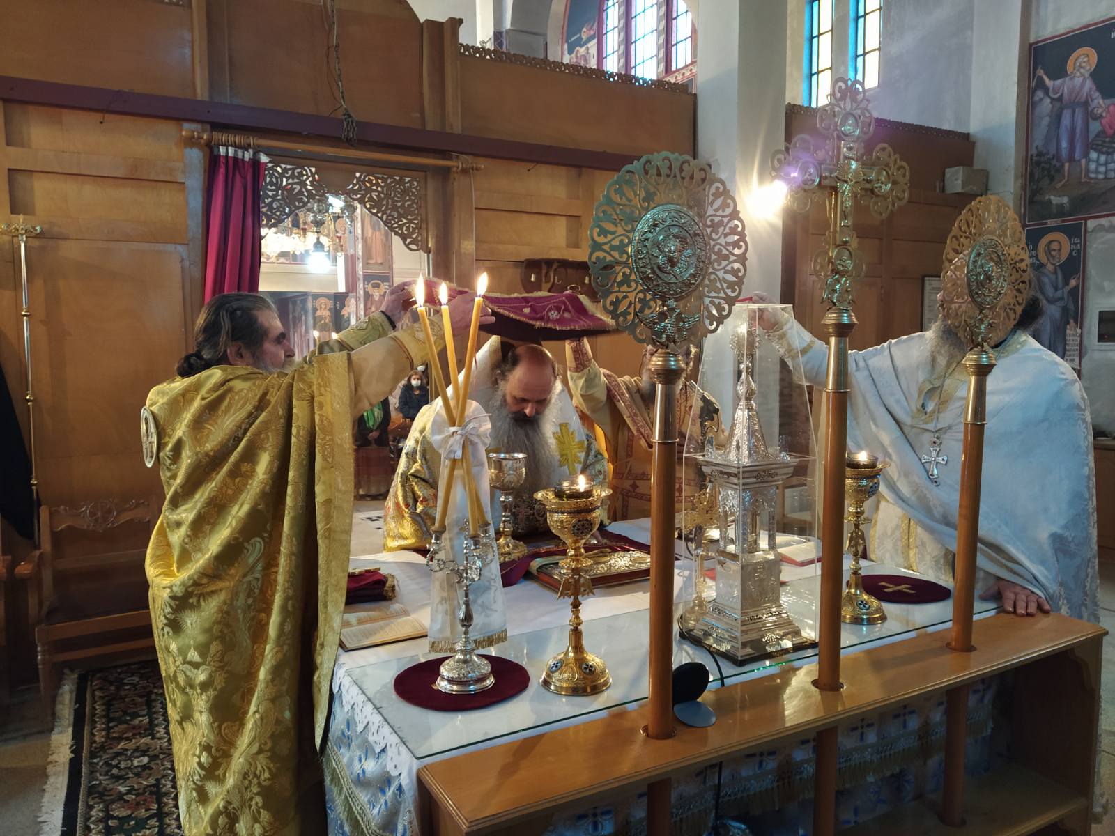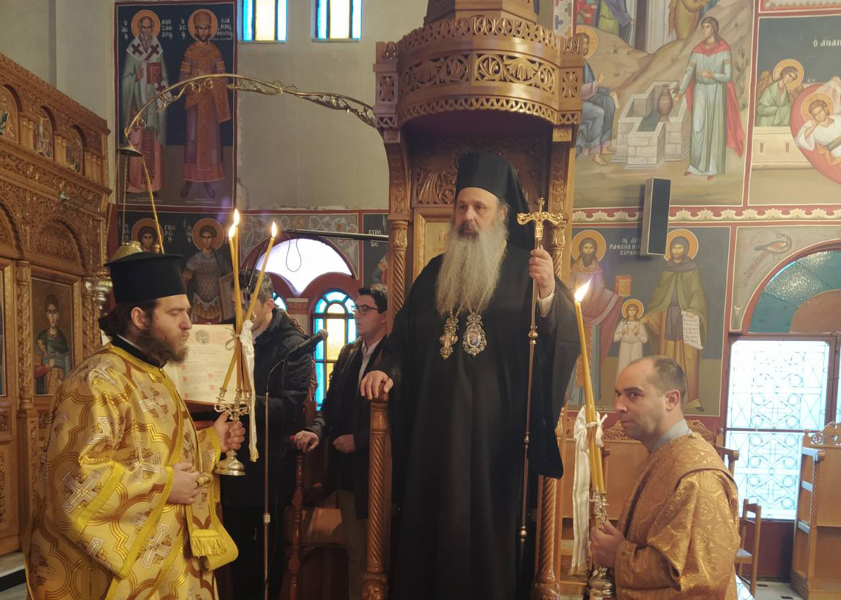 Στην συνέχεια ο Σεβ. κ Θεόκλητος παρουσίασε τον νέο Προϊστάμενο του Ιερού Ναού π. Δημήτριο Τσολακίδη και του ευχήθηκε  καλλίκαρπη διακονία και κάθε ευλογία παρά Κυρίου, ενώ ευχαρίστησε για την προσφορά του στον αμπελώνα του Κυρίου τον συνταξιοδοτηθέντα Εφημέριο της Ενορίας Πρωτ. Νικόλαο Τσουρλή που συμπλήρωσε 40 χρόνια ιερατικής διακονίας.
