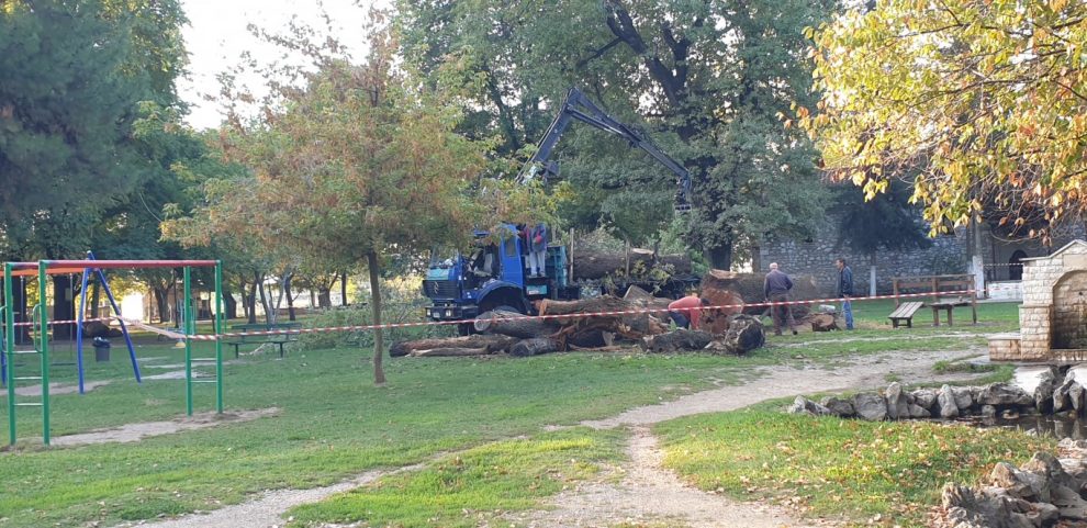 Συγκεκριμένα και όπως κατέγραψε το trikalavoice.gr χθες κόπηκε ένα γέρικο δέντρο στο πάρκο του Αϊ Γιώργη, απ’ όπου τελευταία έσπαγαν και έπεφταν κλαδιά, με κίνδυνο τραυματισμού των αθλουμένων. Όπως σημειώνει ο αρμόδιος αντιδήμαρχος Παναγιώτης Ντιντής “η υπηρεσία μας έχει τσεκάρει τα άρρωστα δέντρα και προχωράει σταδιακά στο κόψιμό τους, προκειμένου να προστατέψει τόσο τους πολίτες από τραυματισμούς, αλλά και άλλα δέντρα από πιθανή ασθένεια”.